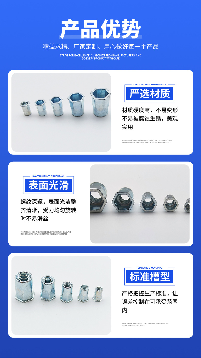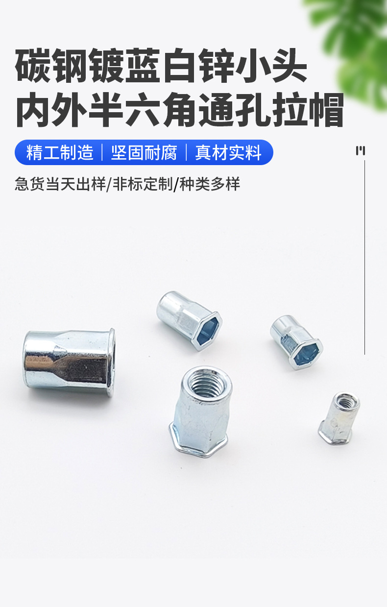 现货小头内外半六角通孔拉帽碳钢镀环保蓝白锌拉铆螺母五金配件长