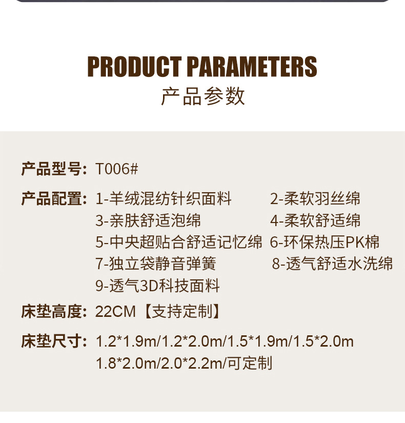 跨境记忆棉床垫定制席梦思静音独立袋弹簧压缩卷包家用酒店床垫