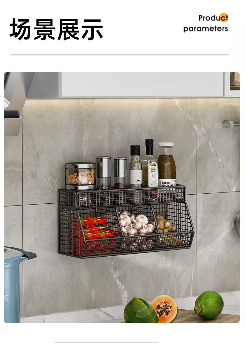 跨境爆款厨房大蒜生姜收纳架葱姜蒜壁挂置物架调料蒜头姜大葱挂篮
