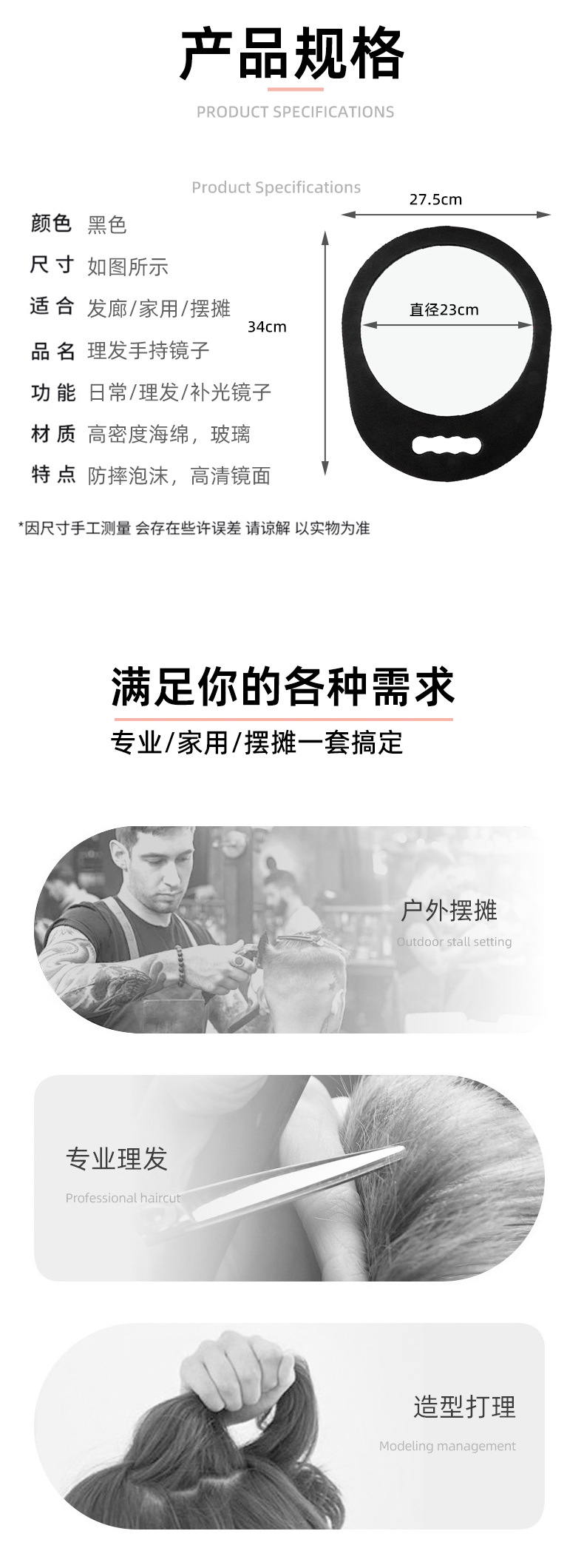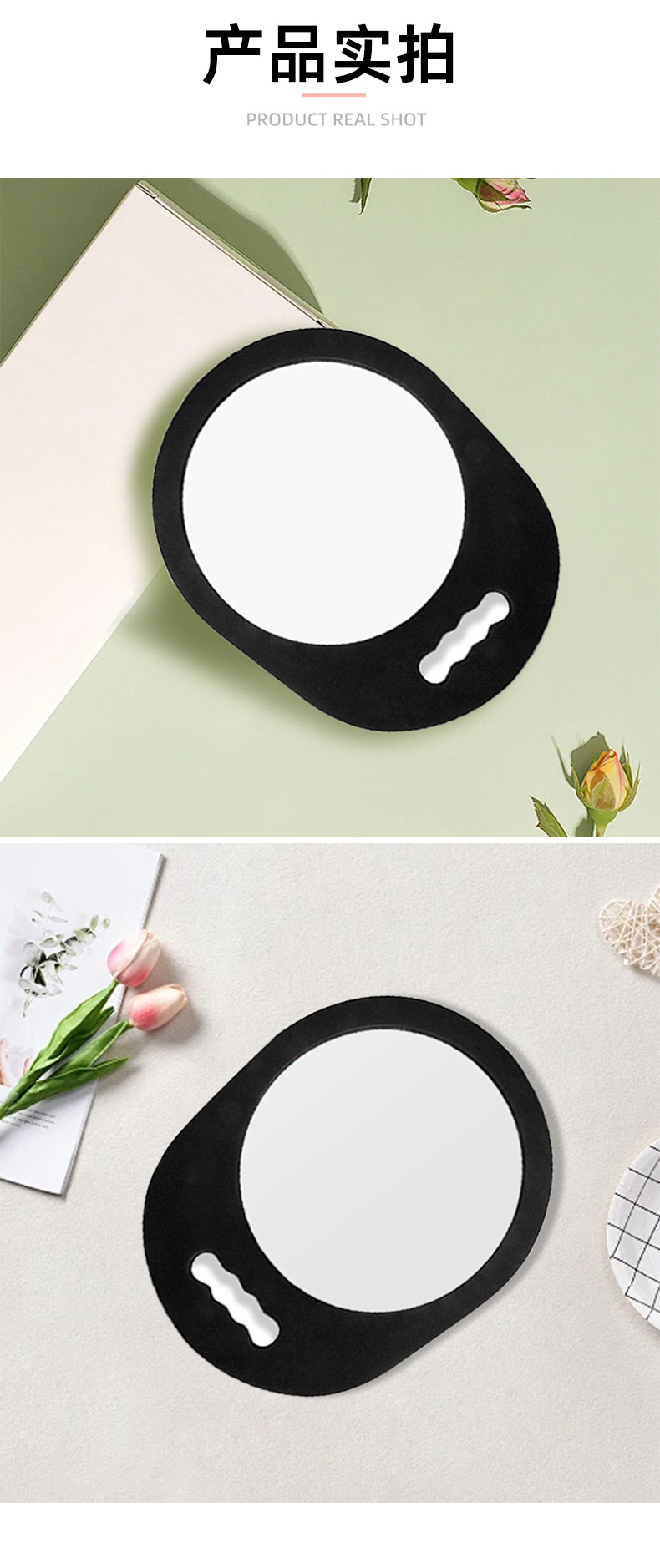 圆形泡沫后背镜理发师美容防摔发廊手持镜后视便携式浴室美发店镜