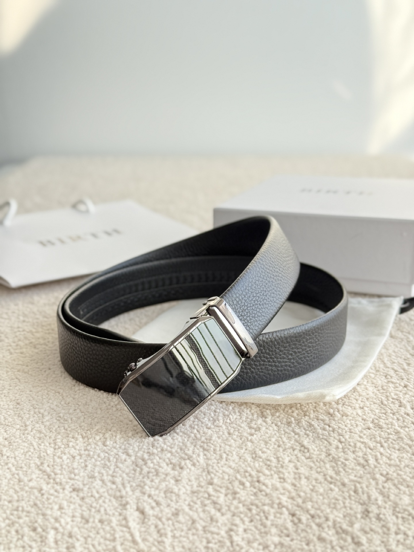 欧美商务正装自动扣皮带3.6cm头层荔枝纹牛皮 男士真皮裤带现货