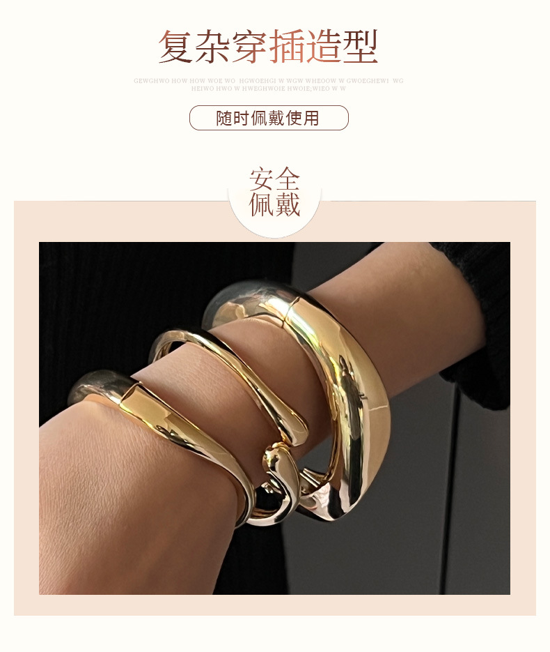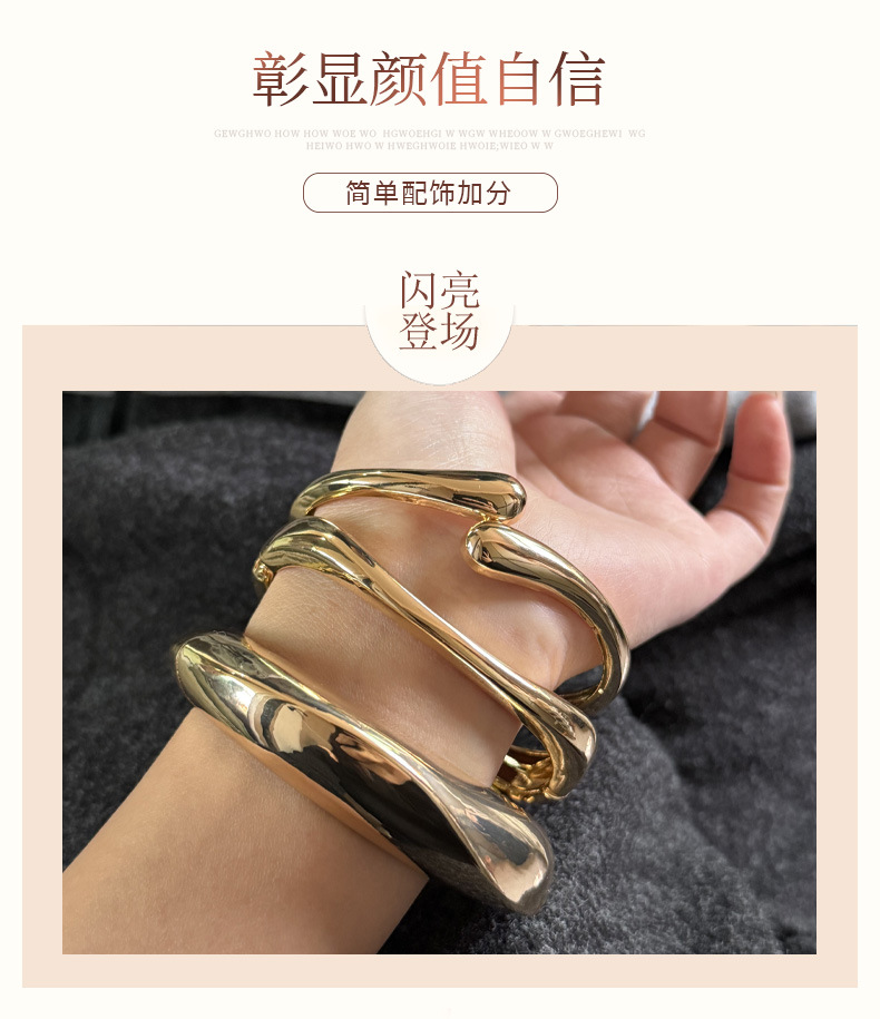 新款欧美时尚百搭不规则镜面手镯无铅无镍无镉环保手环配饰女轻奢