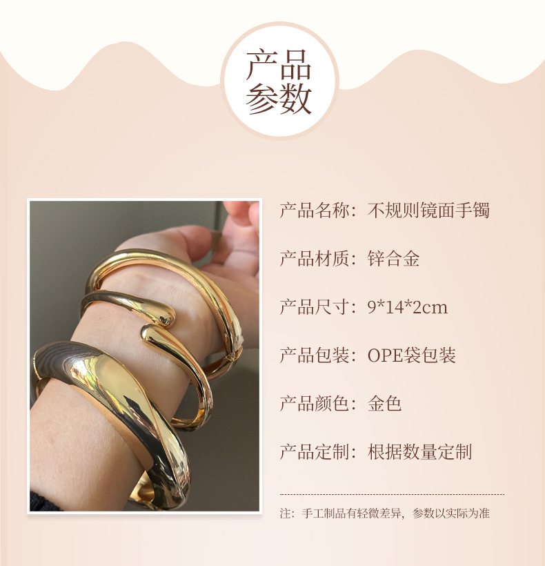 新款欧美时尚百搭不规则镜面手镯无铅无镍无镉环保手环配饰女轻奢,批发价,价格:13.5,厂家直销,新款欧美时尚百搭不规则镜面手镯无铅无镍无镉环保手环配饰女轻奢,免费拿样。