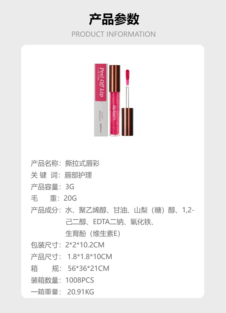 zephoco 撕拉式唇彩 唇部日常顺滑显色柔亮彩妆自然轻盈易上色,批发价,价格:8,厂家直销,zephoco 撕拉式唇彩 唇部日常顺滑显色柔亮彩妆自然轻盈易上色,免费拿样。