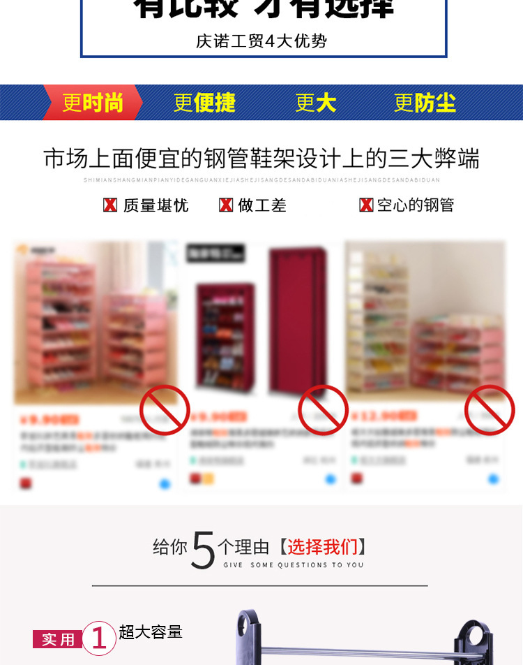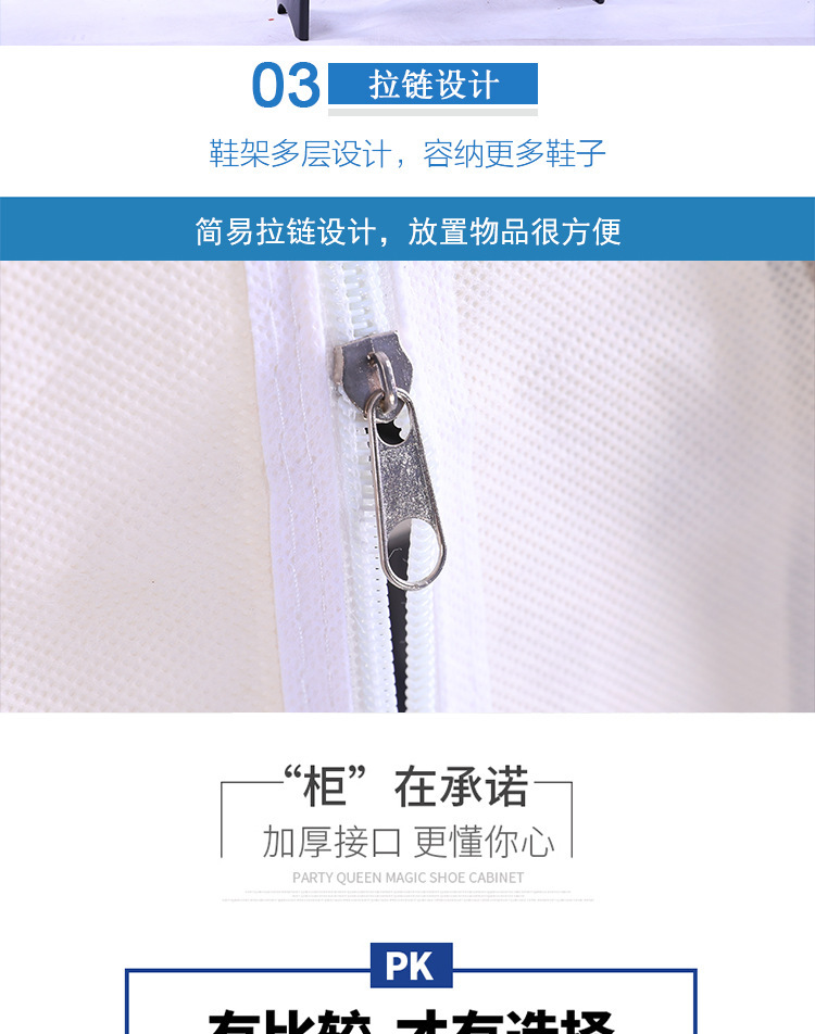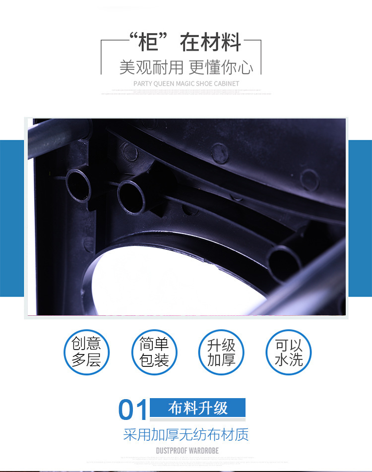 好消息,好消息,家优心牌侧板组装鞋架升级了,每层鞋架目前都有了防尘布装置,让您不要担心上面的鞋子“污染”了下面的鞋子了。