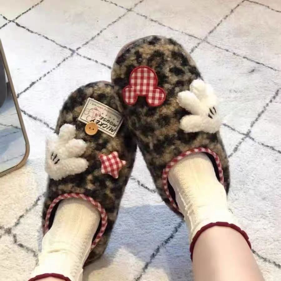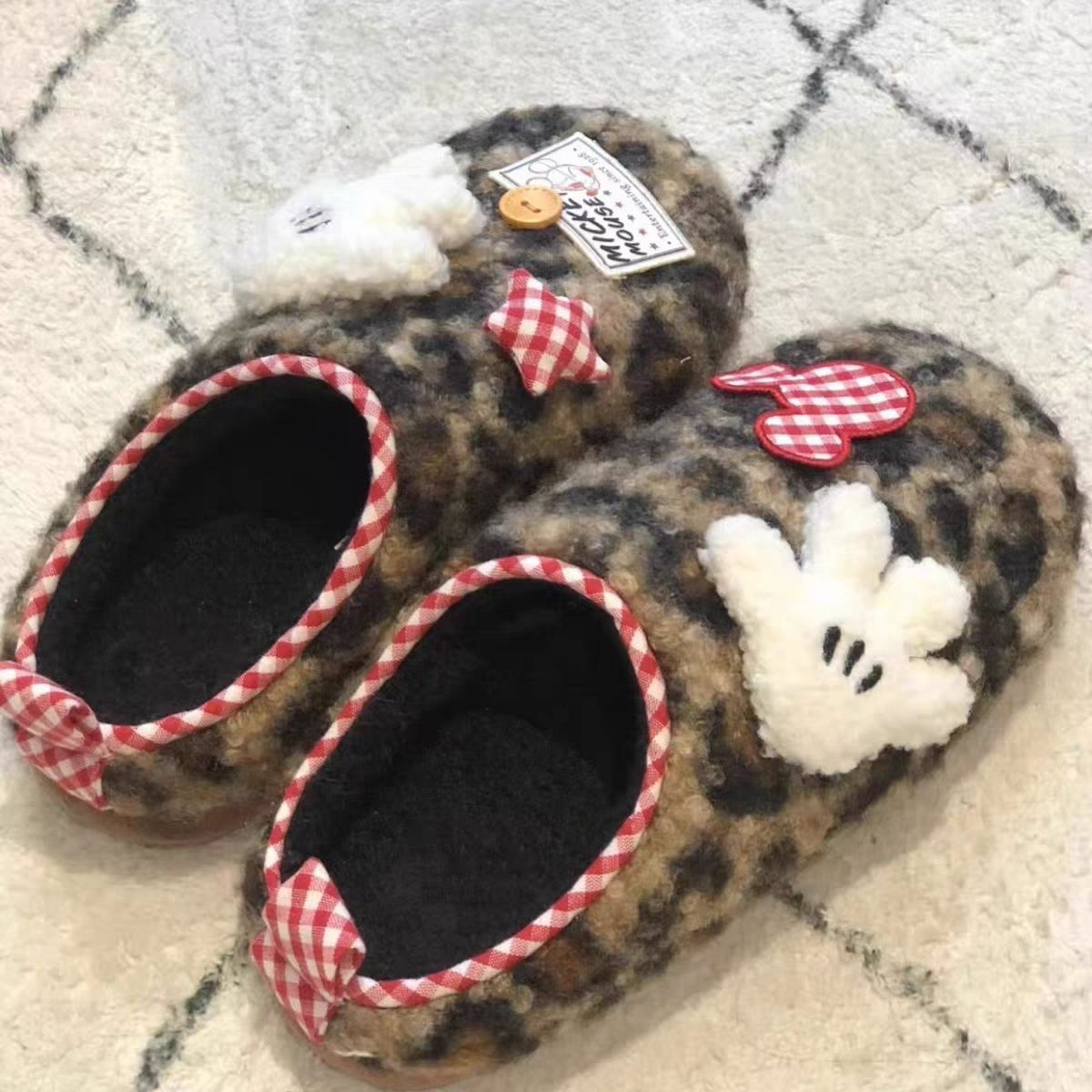 豹纹米奇加绒棉鞋高颜值圣诞节礼物冬季保暖居家棉拖鞋可爱毛毛鞋