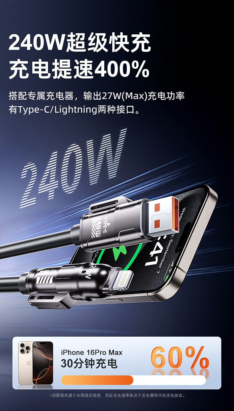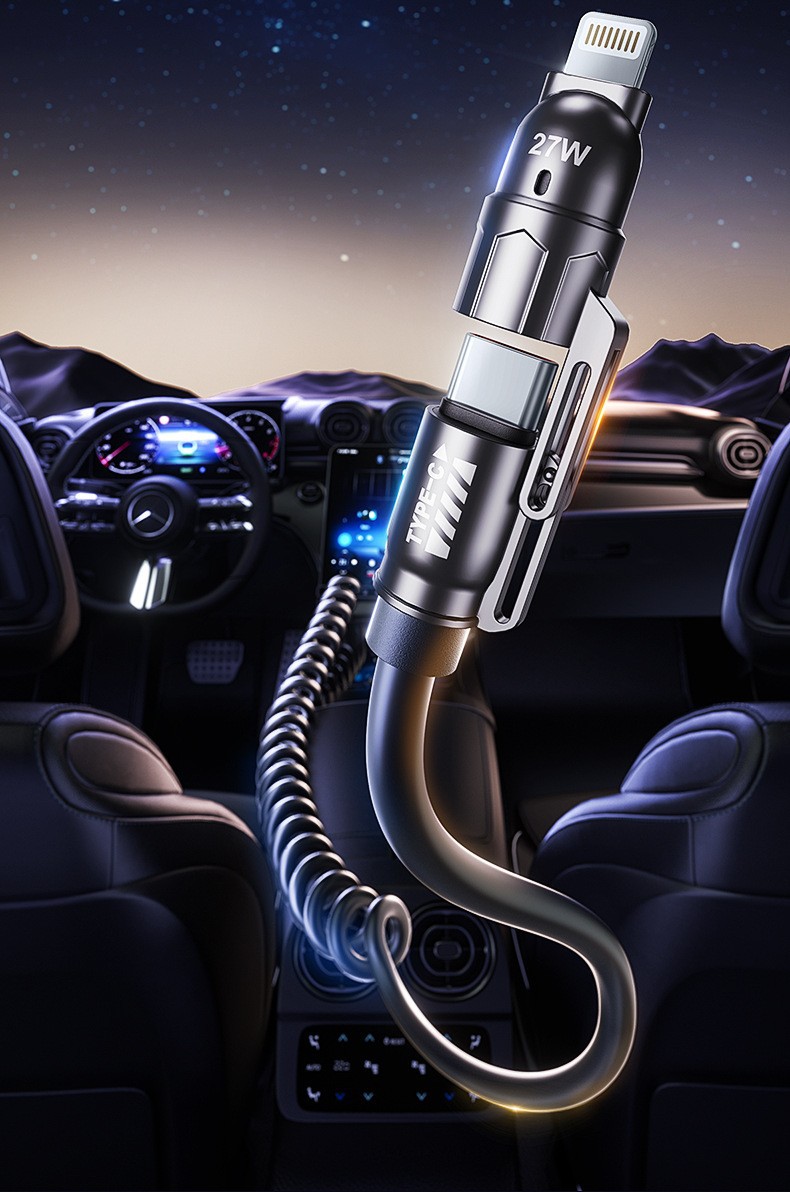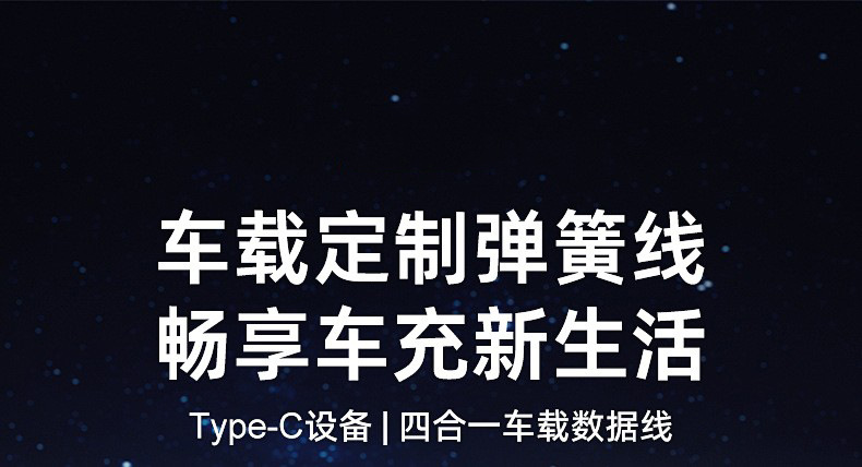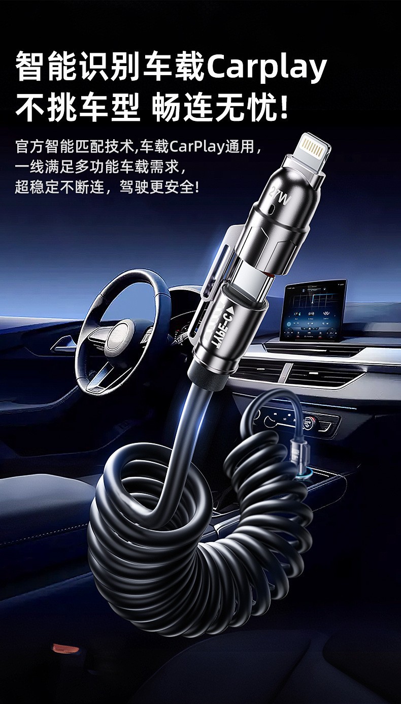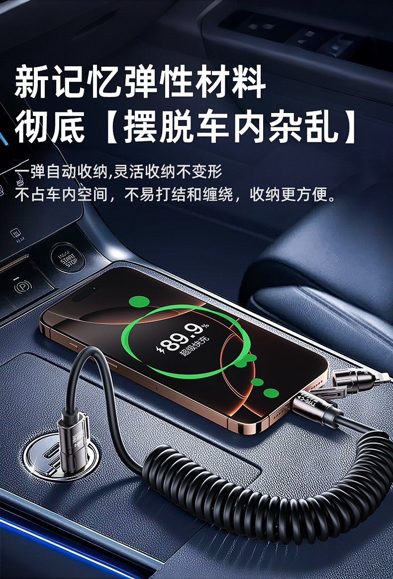 弹簧240w四合一充电线可拉伸调节长度手机数据线适用车载快充线