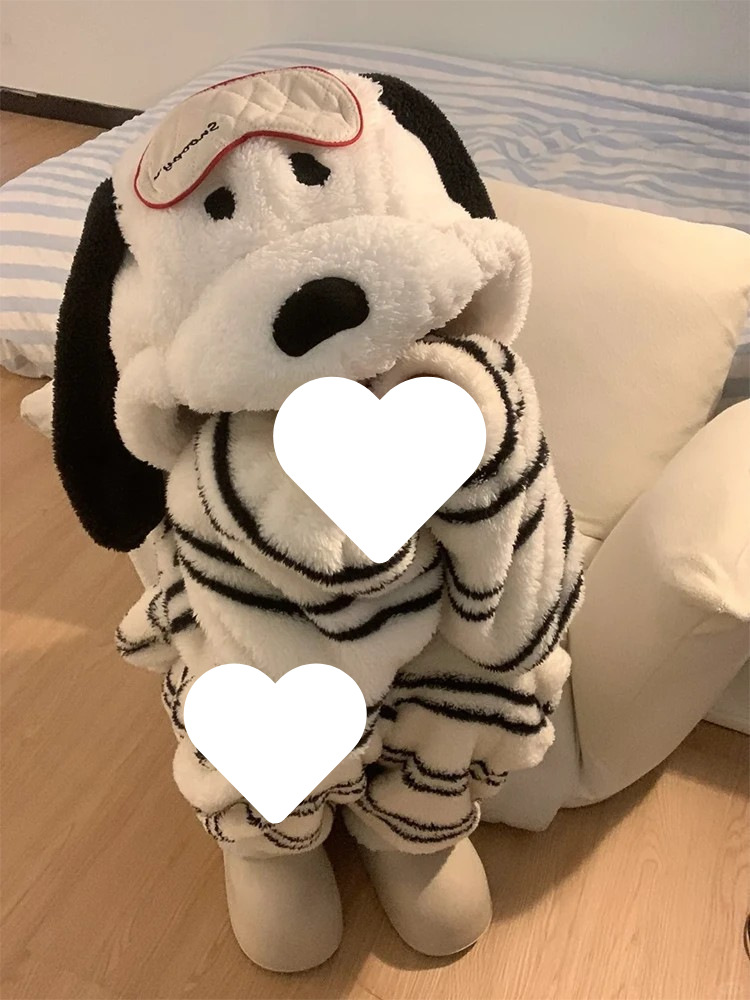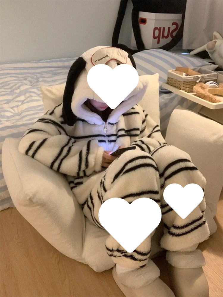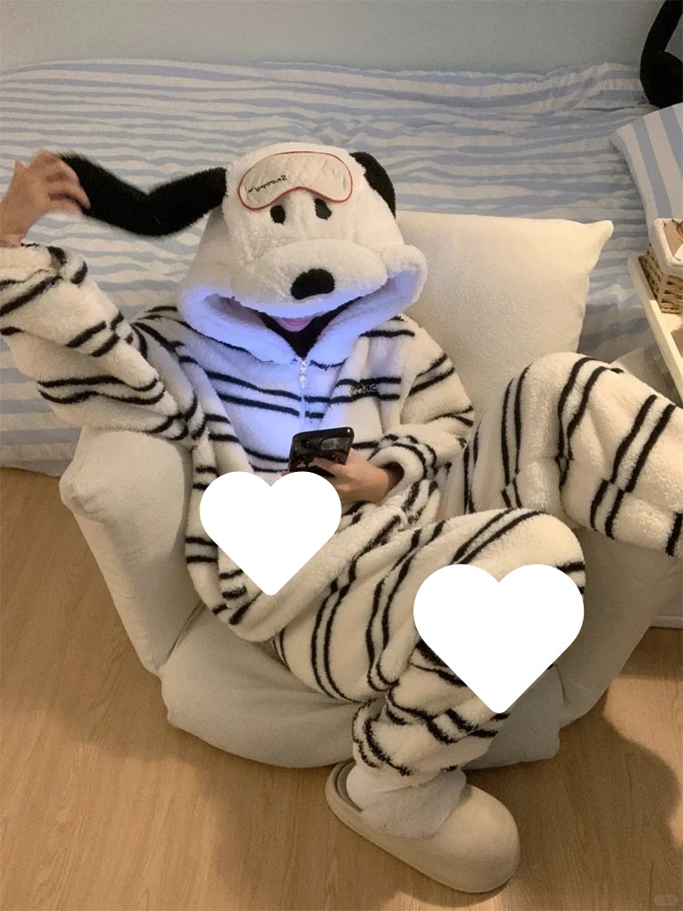 卡通小狗珊瑚绒睡衣秋冬季加绒加厚保暖法兰绒连帽冬天家居服套装