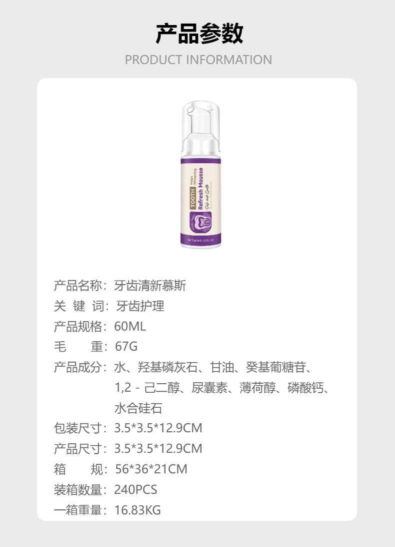 牙齿清新慕斯 温和亮泽呵护牙齿表面清洁口腔异味舒适洁净护理,批发价,价格:4,厂家直销,牙齿清新慕斯 温和亮泽呵护牙齿表面清洁口腔异味舒适洁净护理,免费拿样。