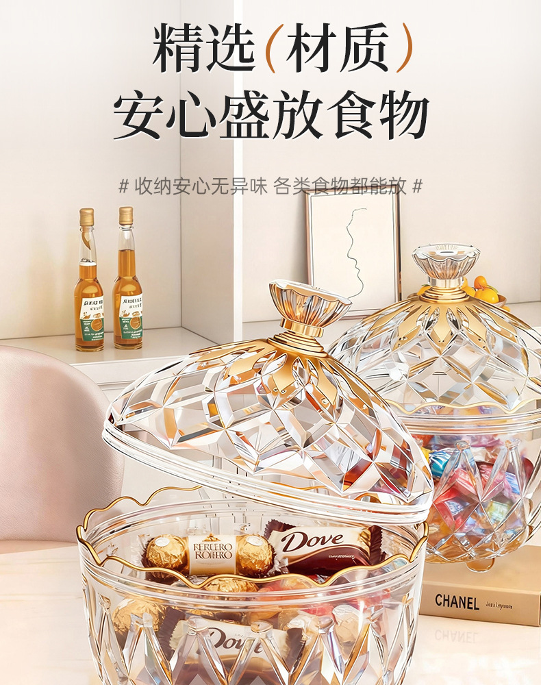 法式轻奢pet塑料糖果盒家用客厅透明糖果罐高颜值零食干果收纳罐