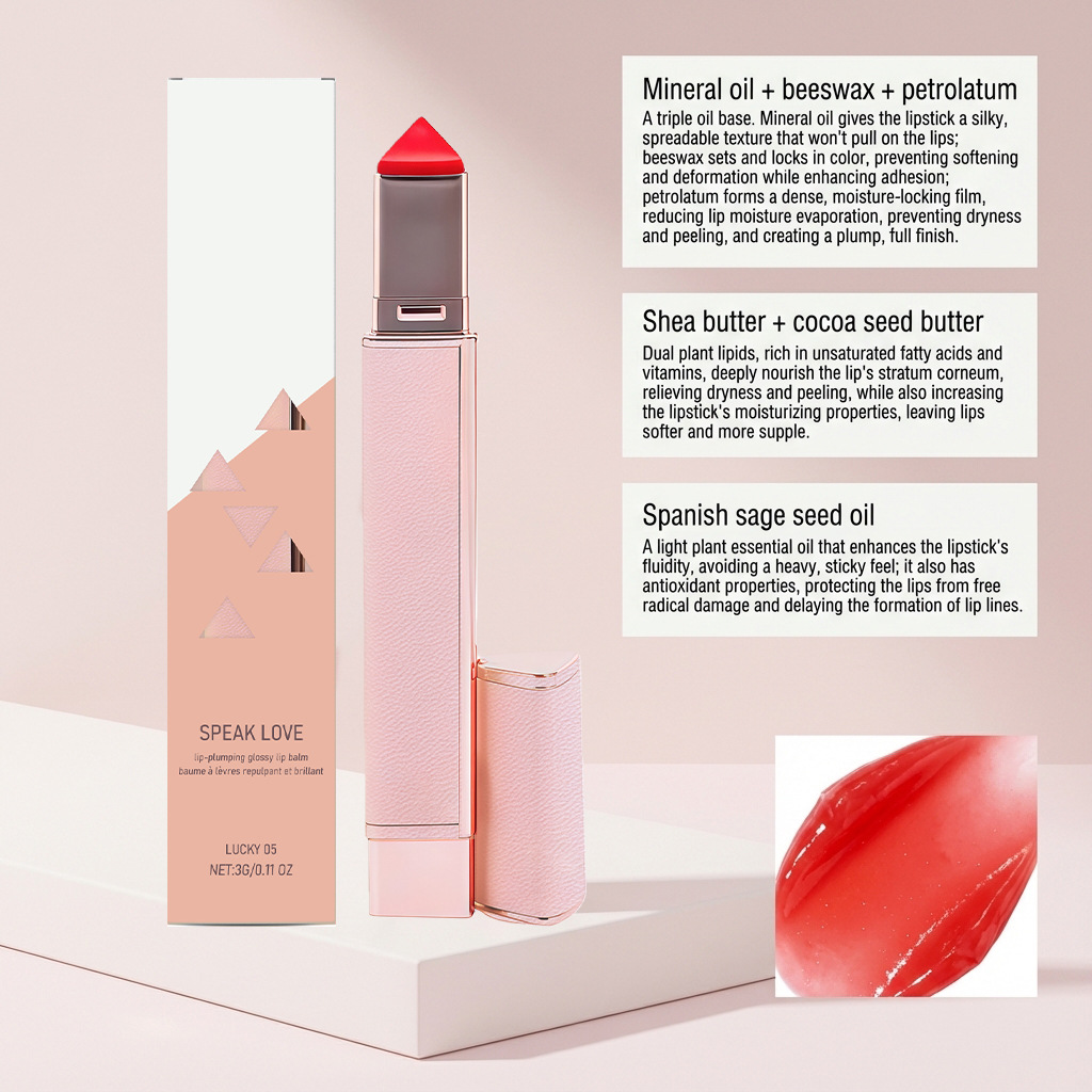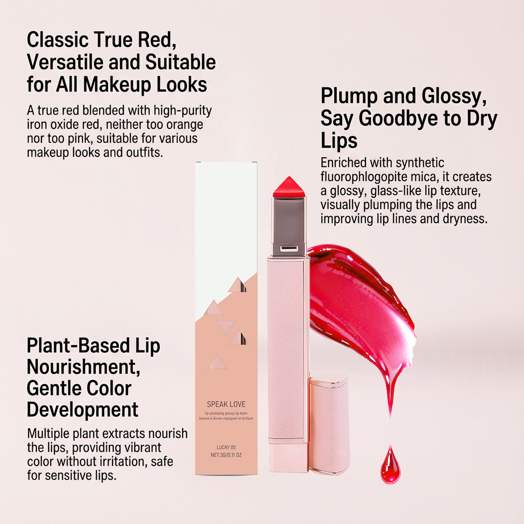 丰盈亮泽润唇膏(Lucky-05#) 经典纯红色保湿柔嫩显色百搭唇妆