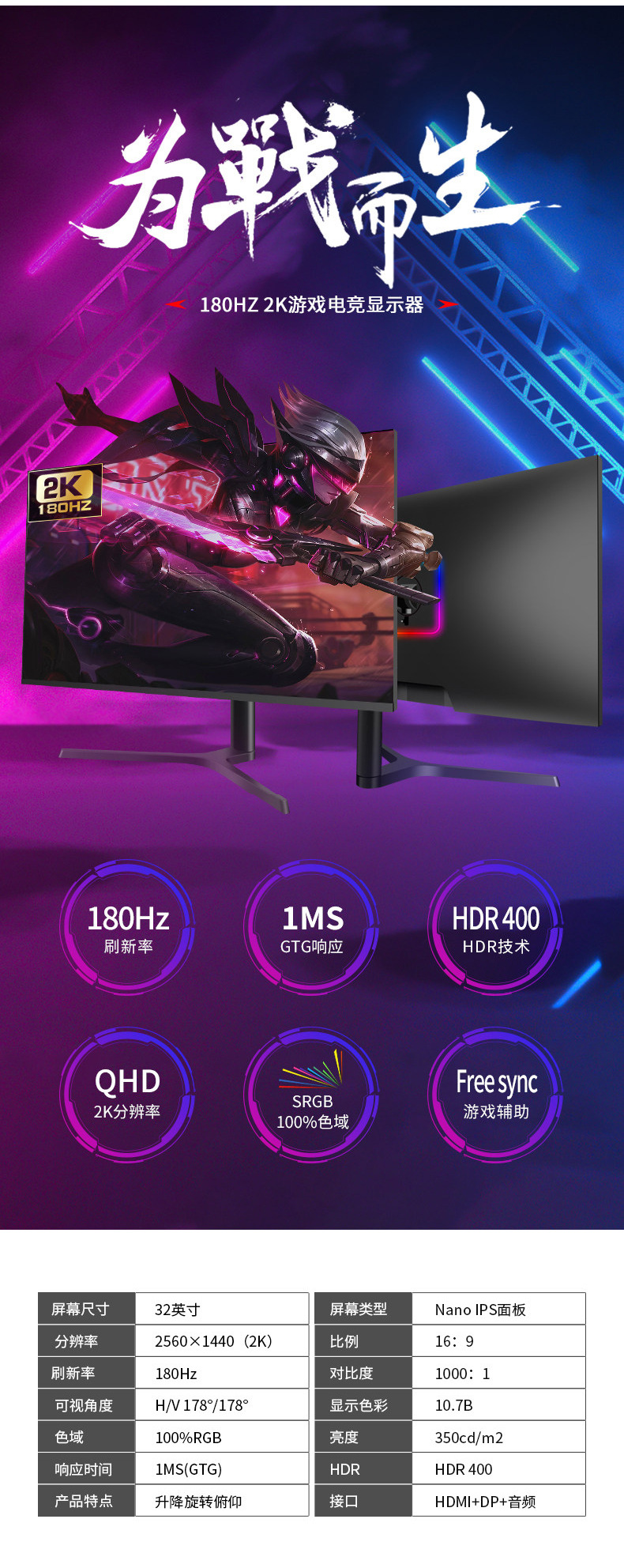 跨境32英寸2K 180HZ高清显示器专业电竞屏gaming compu电脑显示屏,批发价,价格:969,厂家直销,跨境32英寸2K 180HZ高清显示器专业电竞屏gaming compu电脑显示屏,免费拿样。