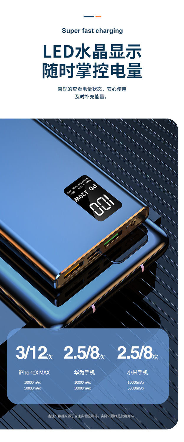 跨境大容量20000毫安充电宝实标120w超级快充pd便携超薄移动电源
