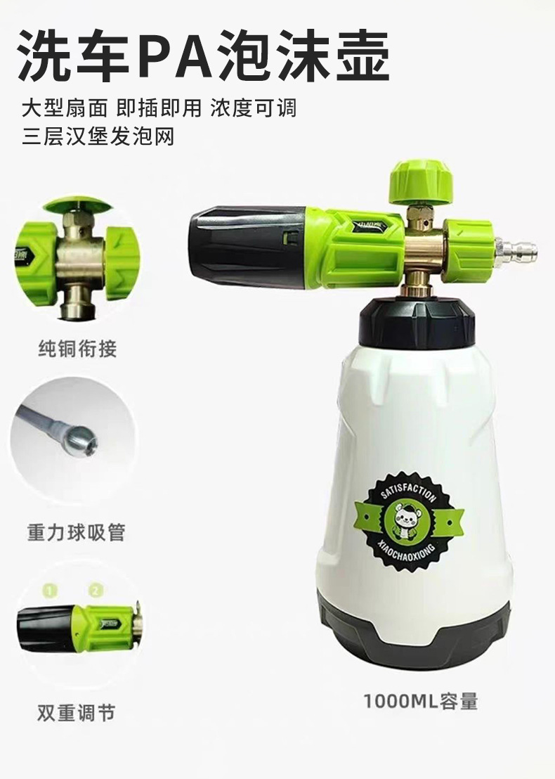 厂家洗车水枪PA泡沫大嘴喷壶三层汉堡发泡网手持气压洗车工具喷壶