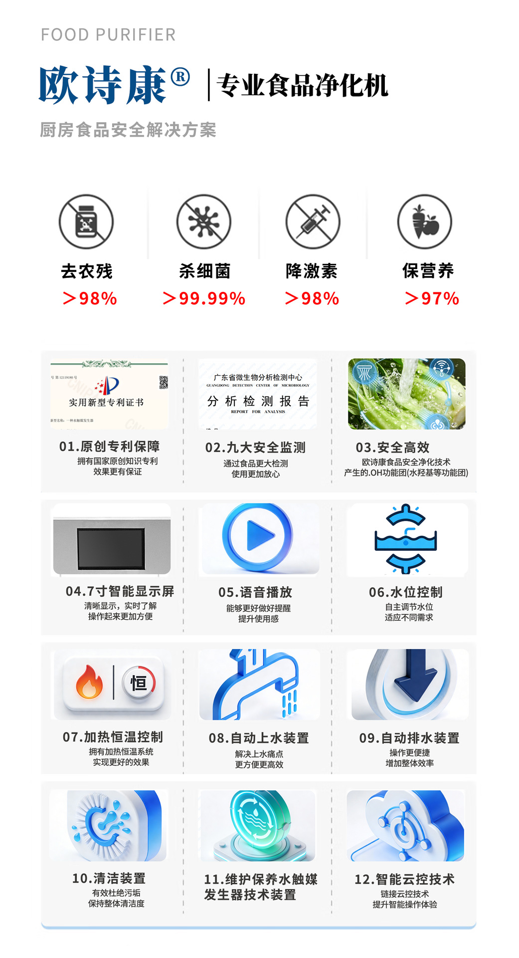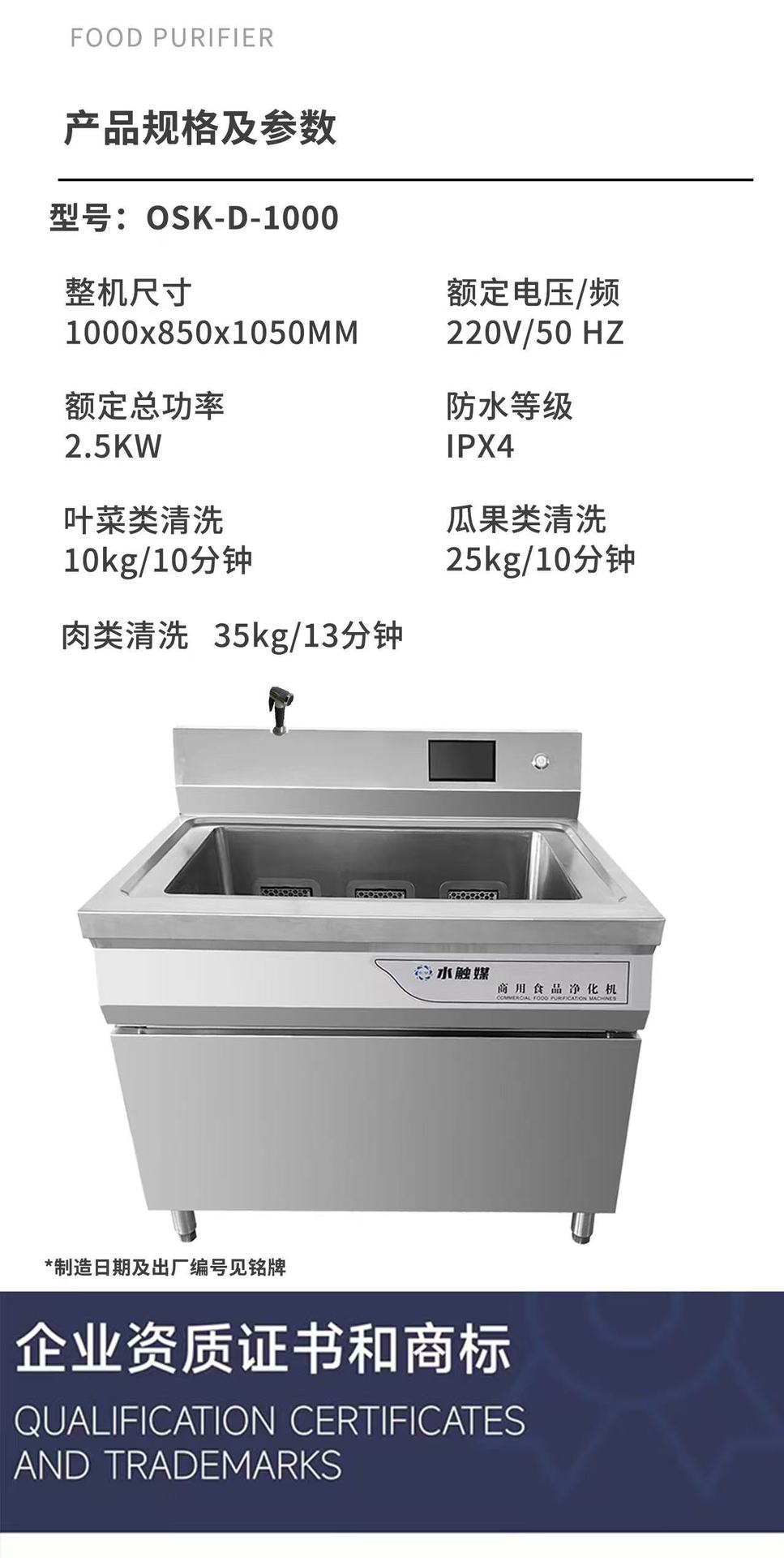 欧诗康水触媒食品净化机食材清理去除农药食品机1000*850*1050mm