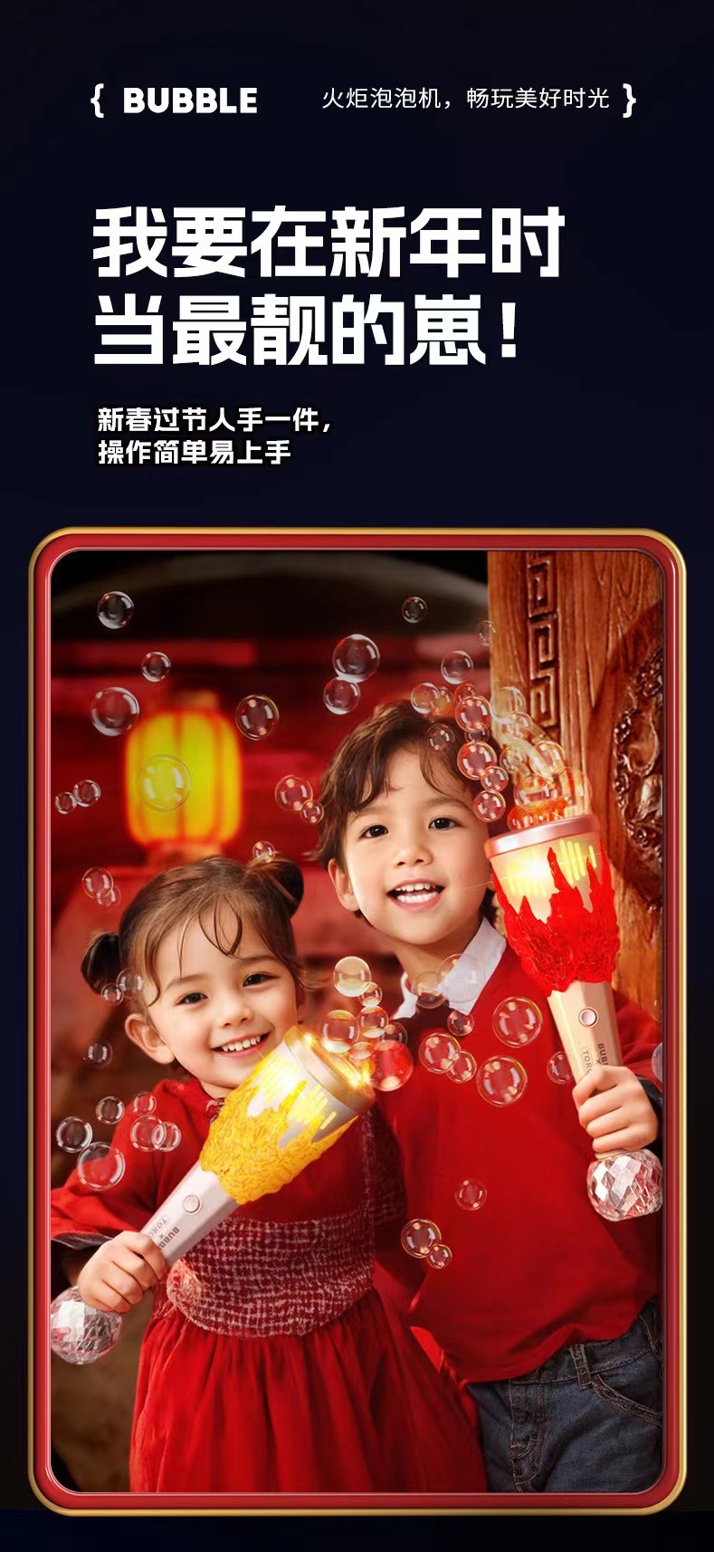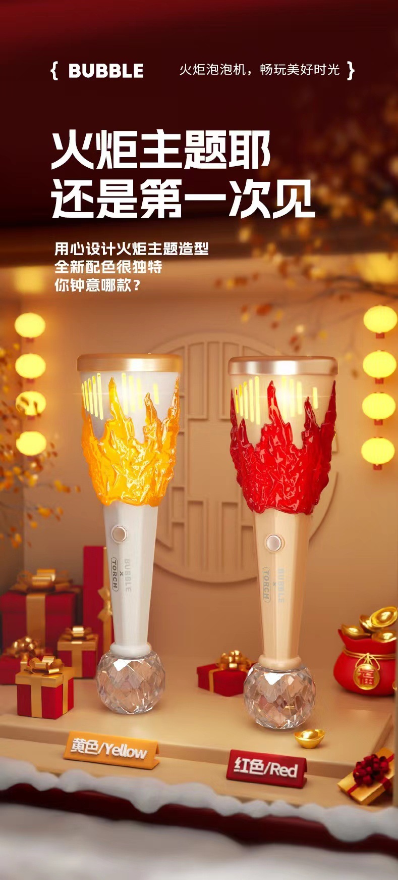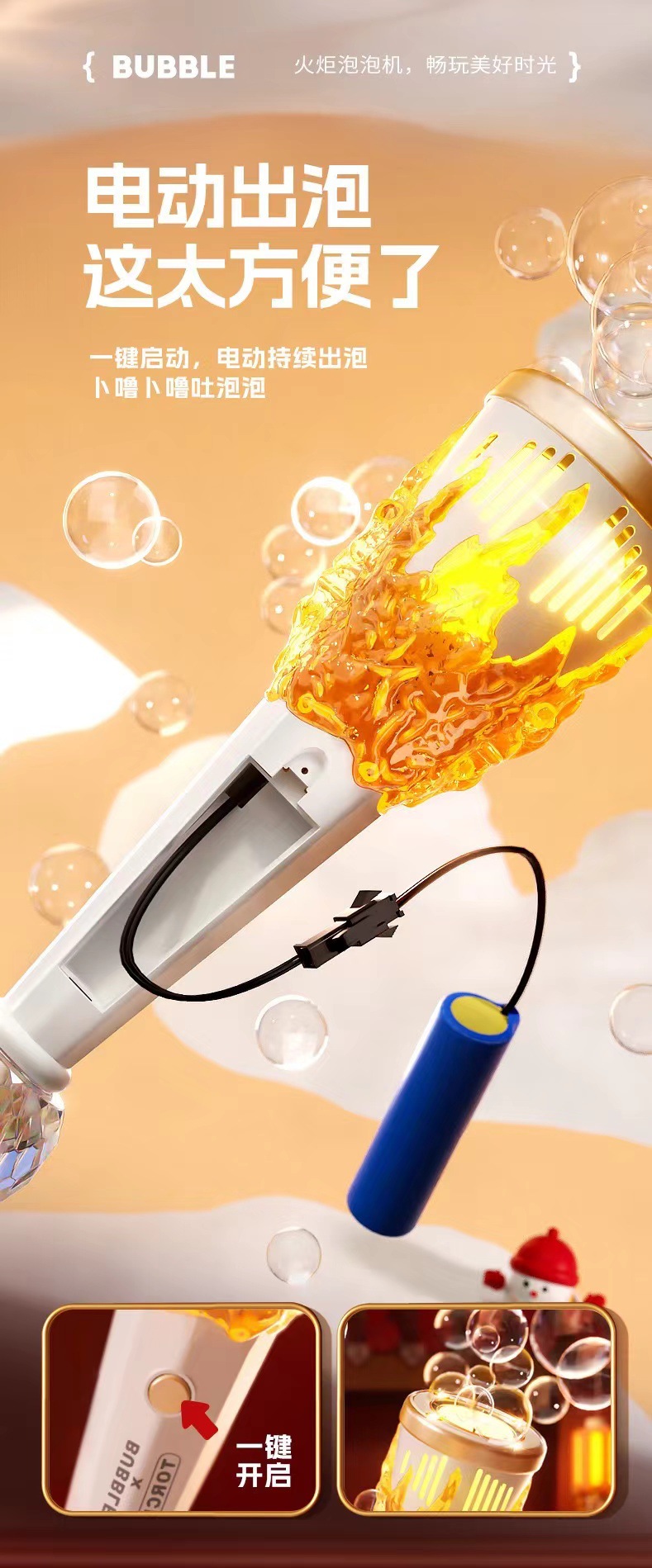 全自动儿童新款电动火炬泡泡机多孔吹泡泡炫彩声光手持泡泡棒玩具