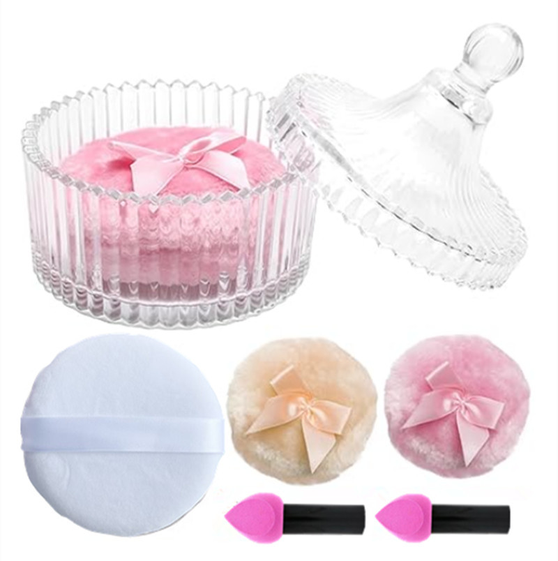 跨境专供玻璃合装立绒长毛蝴蝶结海绵海绵散粉扑密粉扑定妆扑
