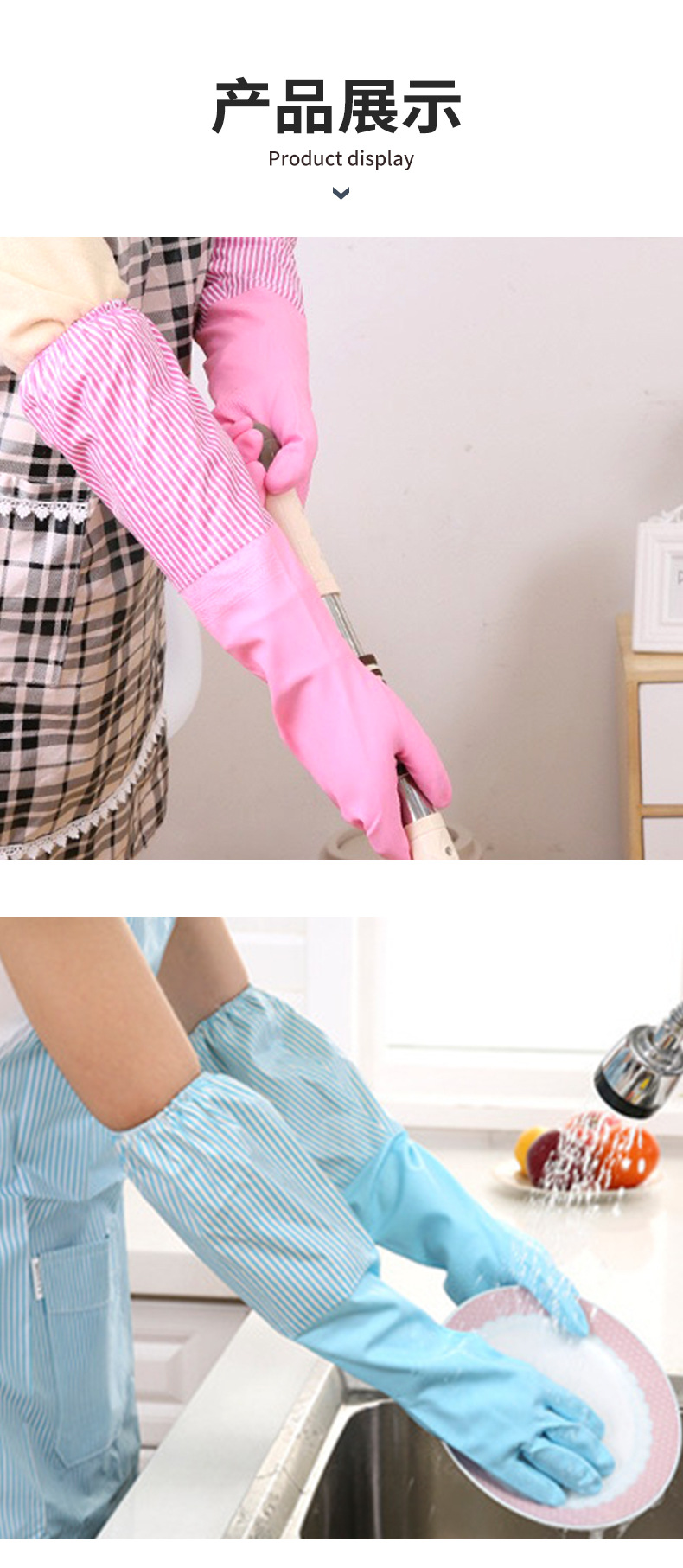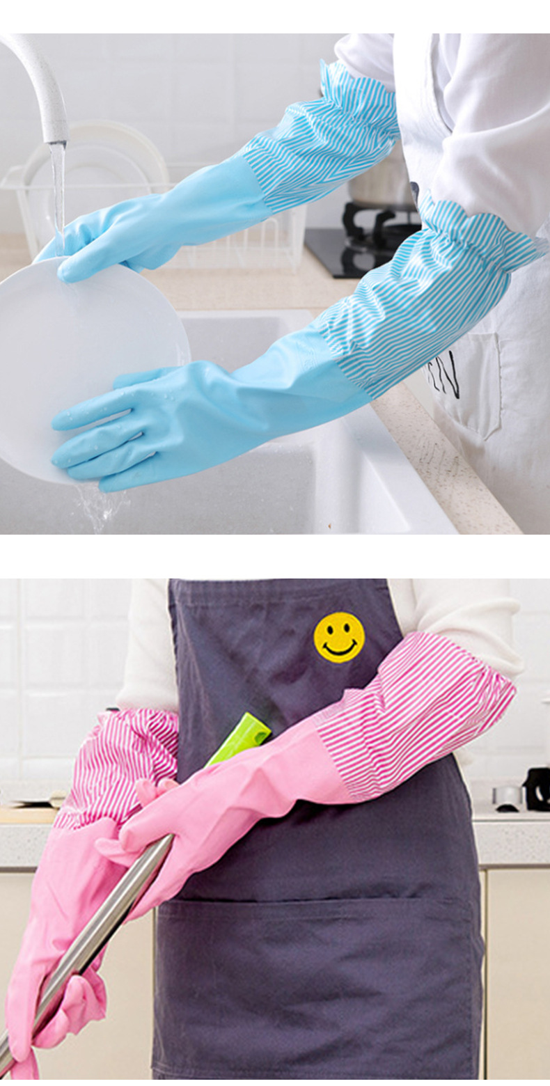家用束口松紧加绒洗碗手套厨房清洁防水家务手套洗衣加长乳胶手套