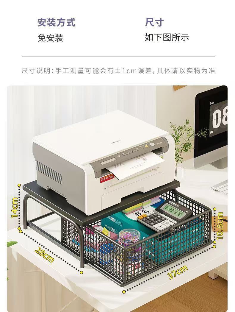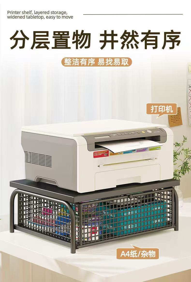 办公室桌面3d打印机置物架不锈钢带抽屉复印机小型文件a4纸收纳