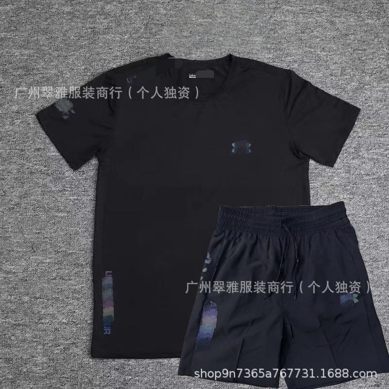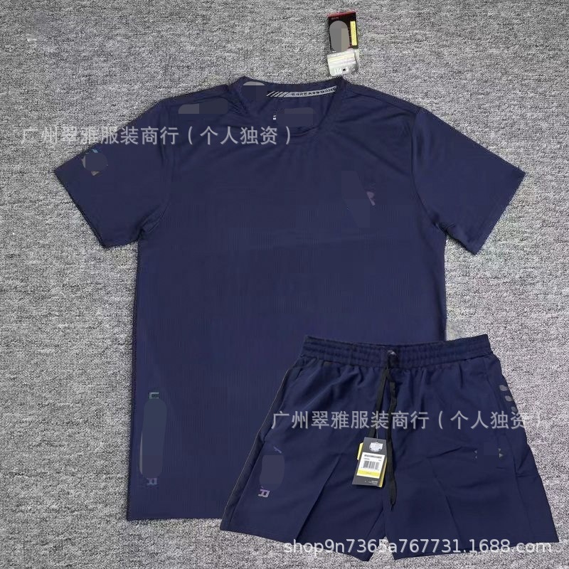 潮流跨境休闲T恤速干短袖套装男士夏季跑步运动健身透气吸湿上衣
