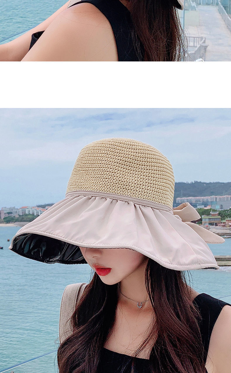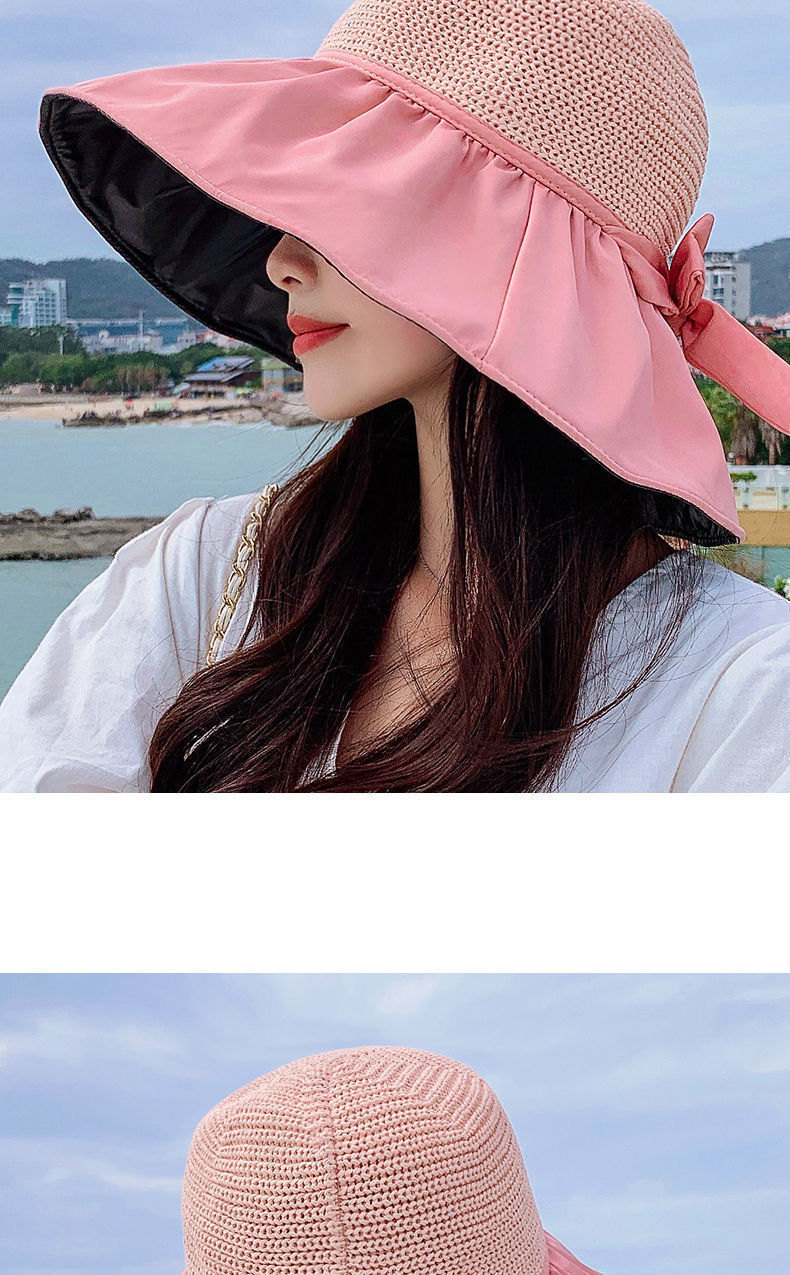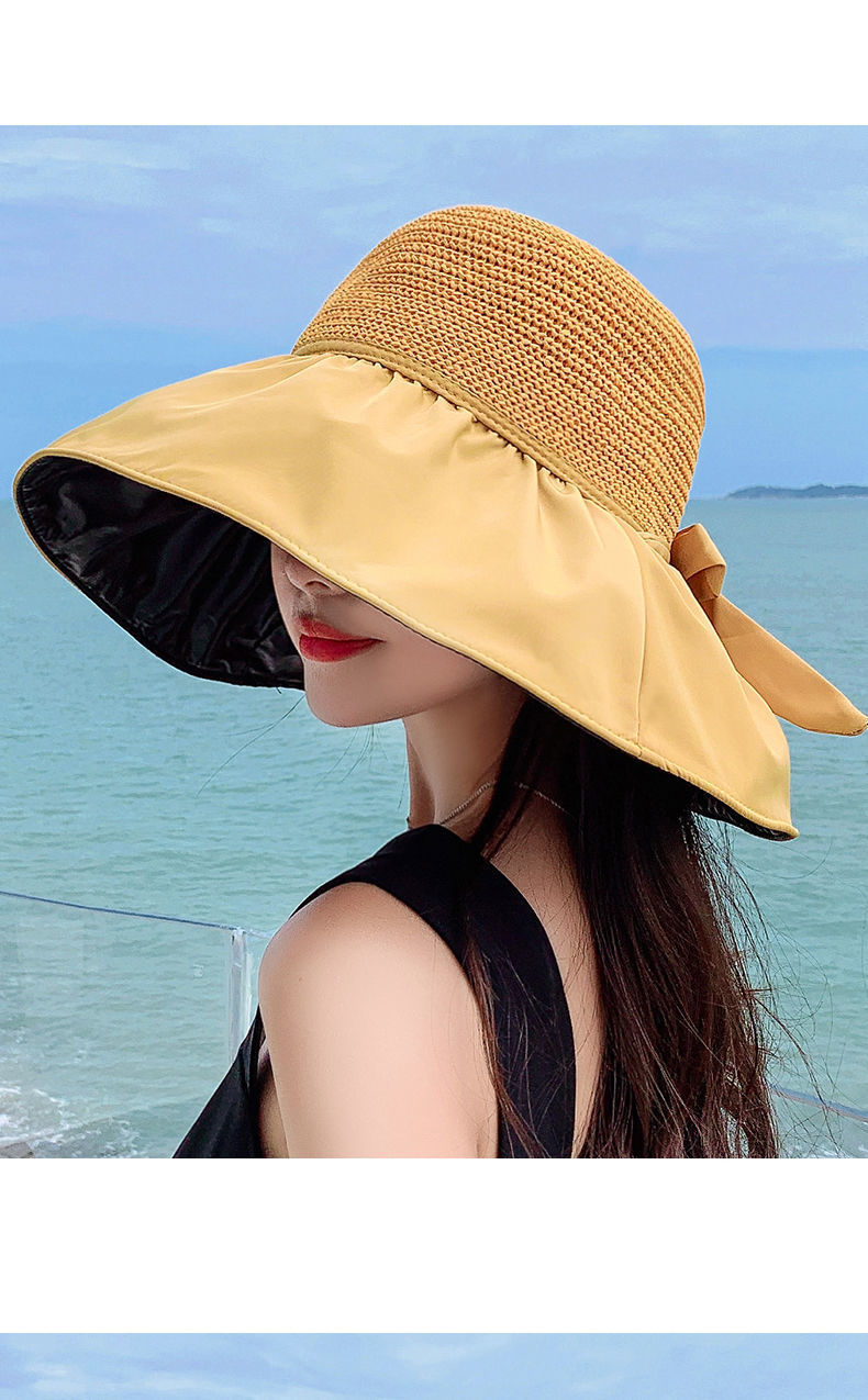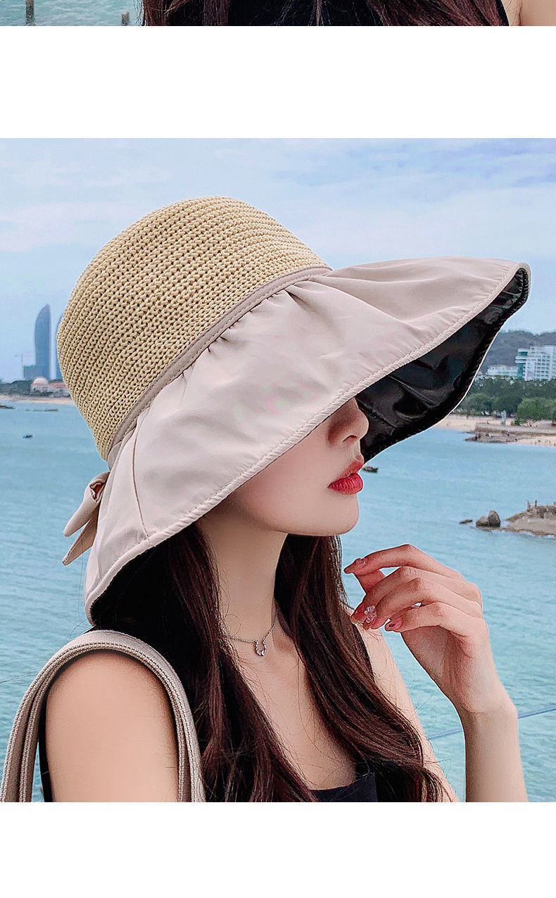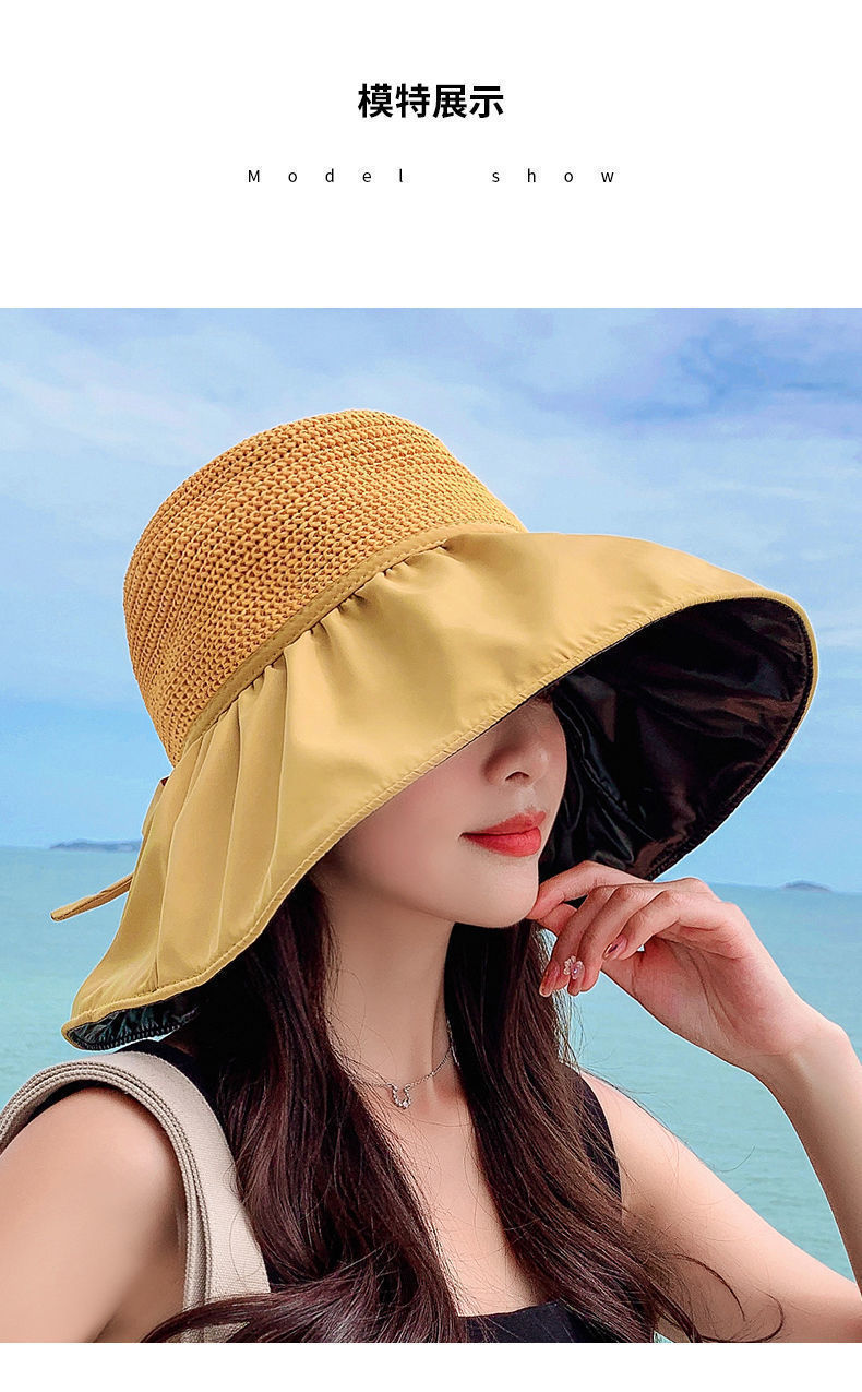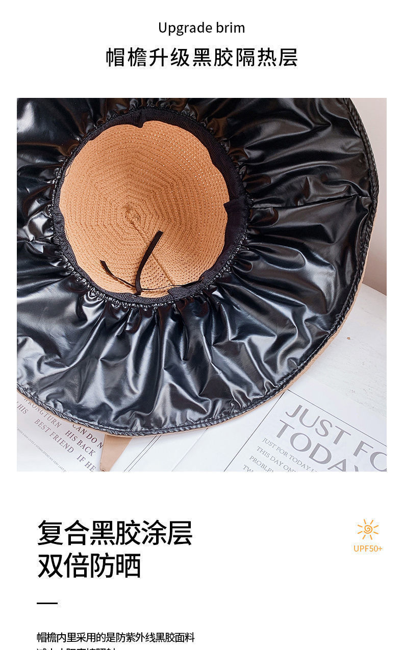 夏季防晒帽黑胶渔夫遮阳帽新款时尚百搭黑胶大沿遮脸沙滩太阳帽