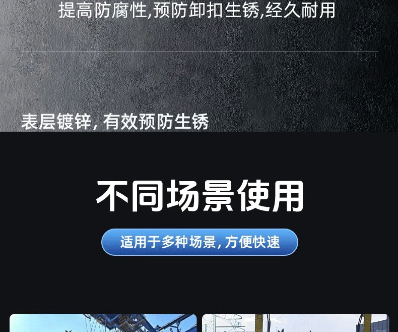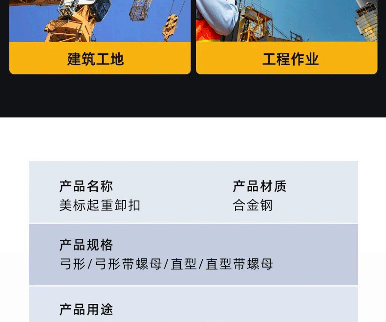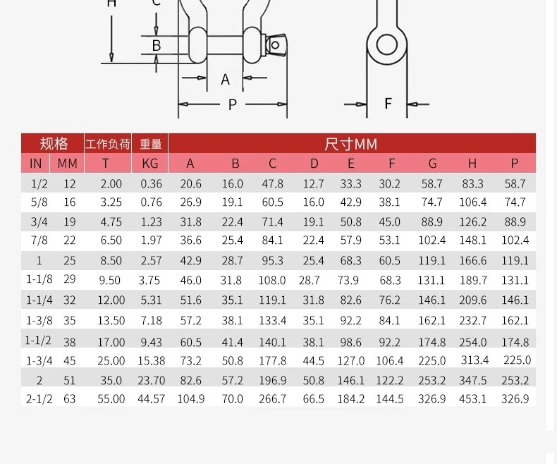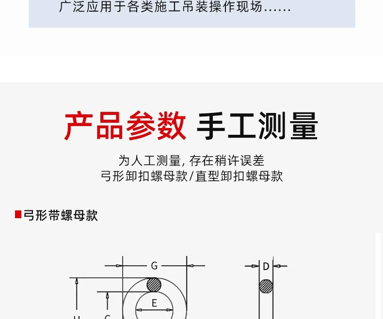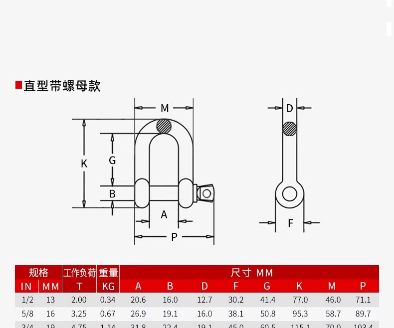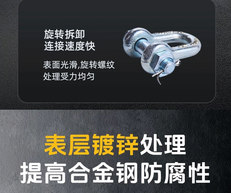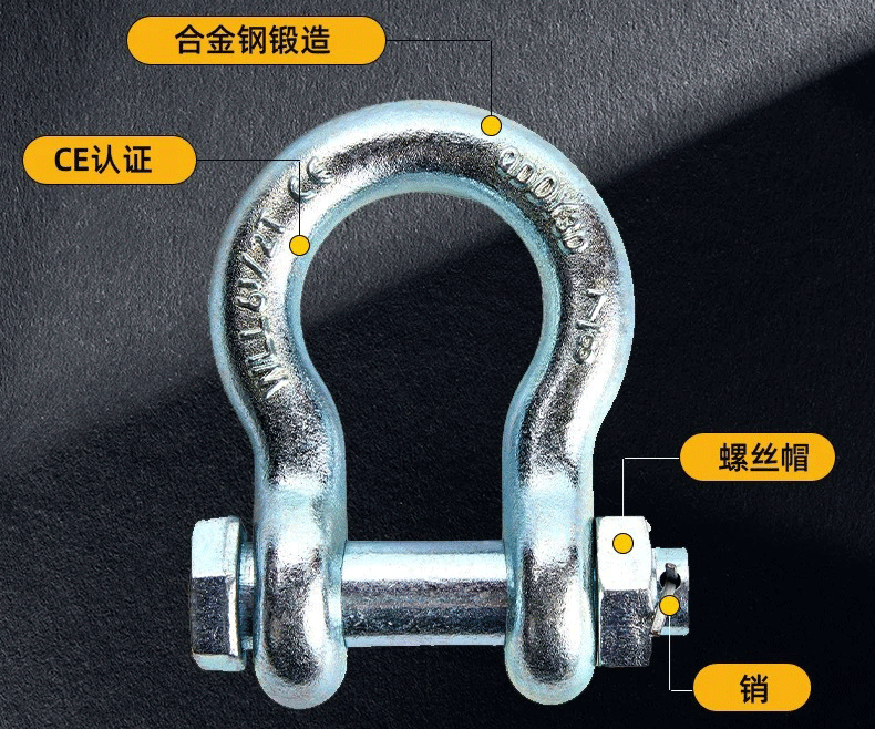 D型美式弓形卸扣6倍安全系数国标连接扣不锈钢u型环镀锌重型卸扣