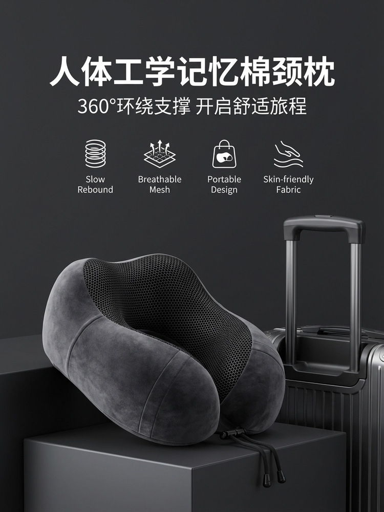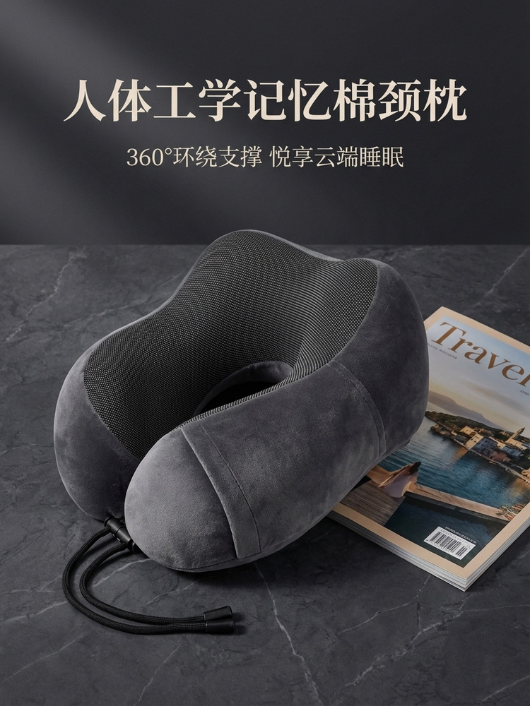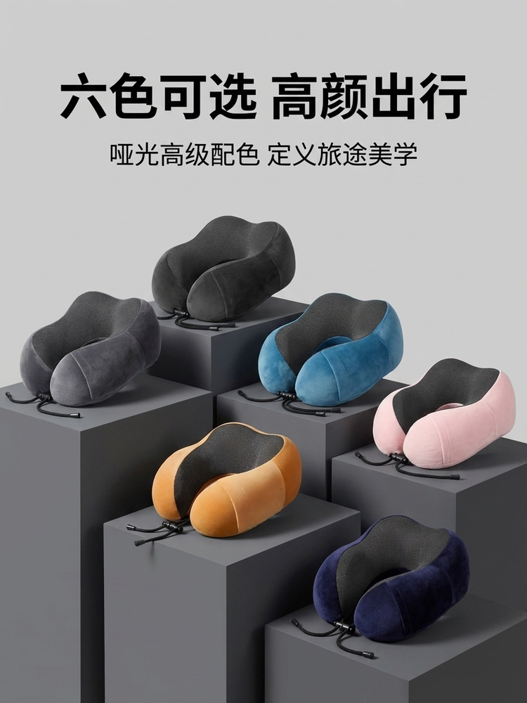 跨境外贸记忆棉u型枕便携飞机旅行办公室午睡颈椎脖子u型护颈枕