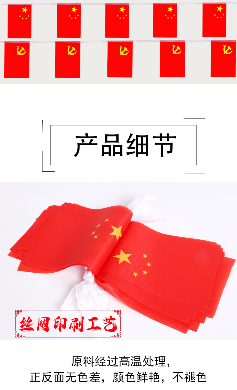 国庆节国旗串旗加厚尼龙绳防水防晒装饰彩旗节日布置小红旗