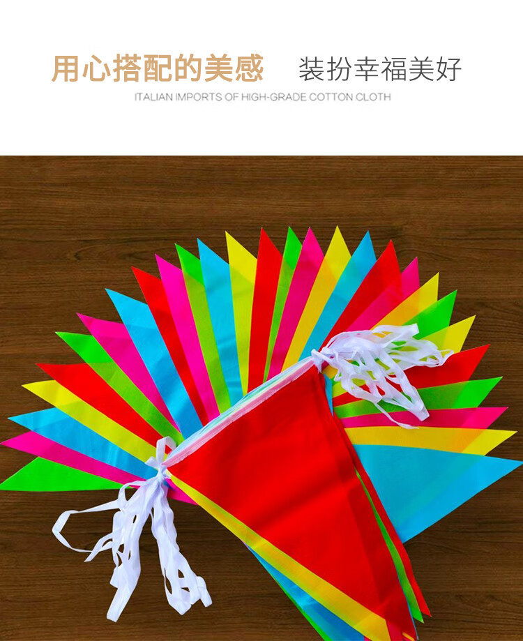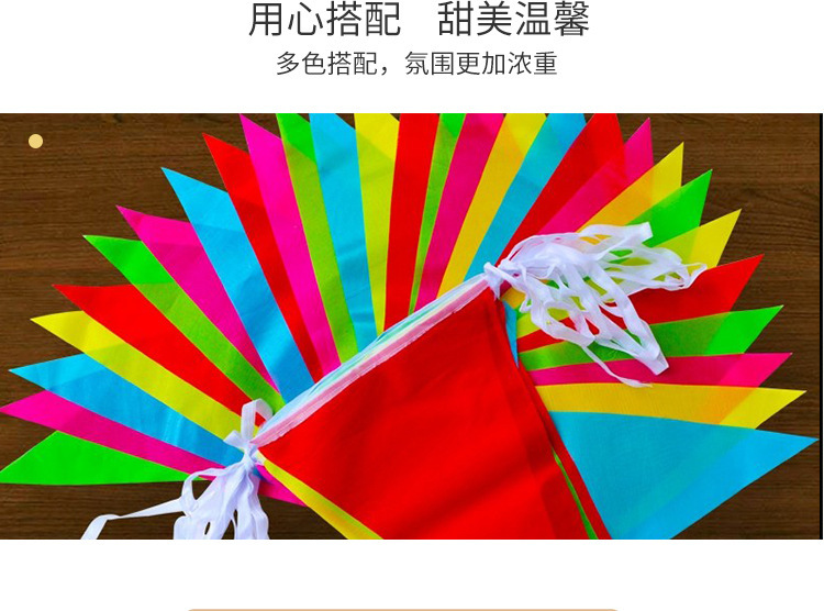 开业结婚小彩条吊旗加粗尼龙绳串旗防水防晒户外装饰彩旗三角旗