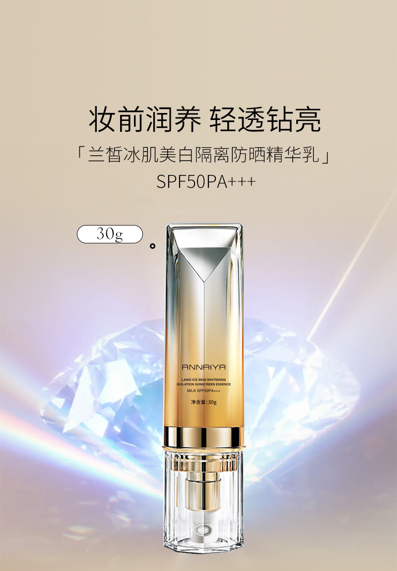 安奈雅冰肌美白隔离防晒霜精华乳遮瑕防紫外线持久防汗不油腻新品,批发价,价格:19,厂家直销,安奈雅冰肌美白隔离防晒霜精华乳遮瑕防紫外线持久防汗不油腻新品,免费拿样。