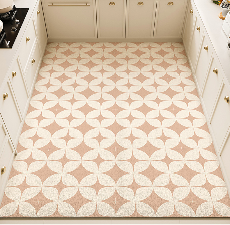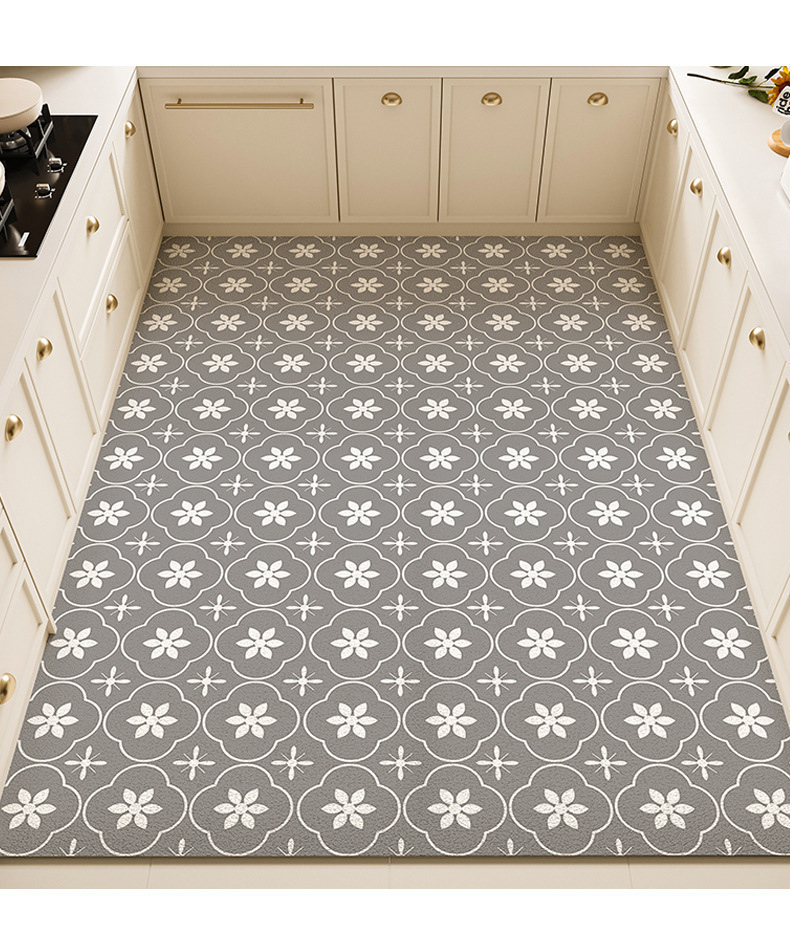 复古花卉吸水皮革地毯厨房防水防油易打理地毯入户可裁剪耐脏门垫