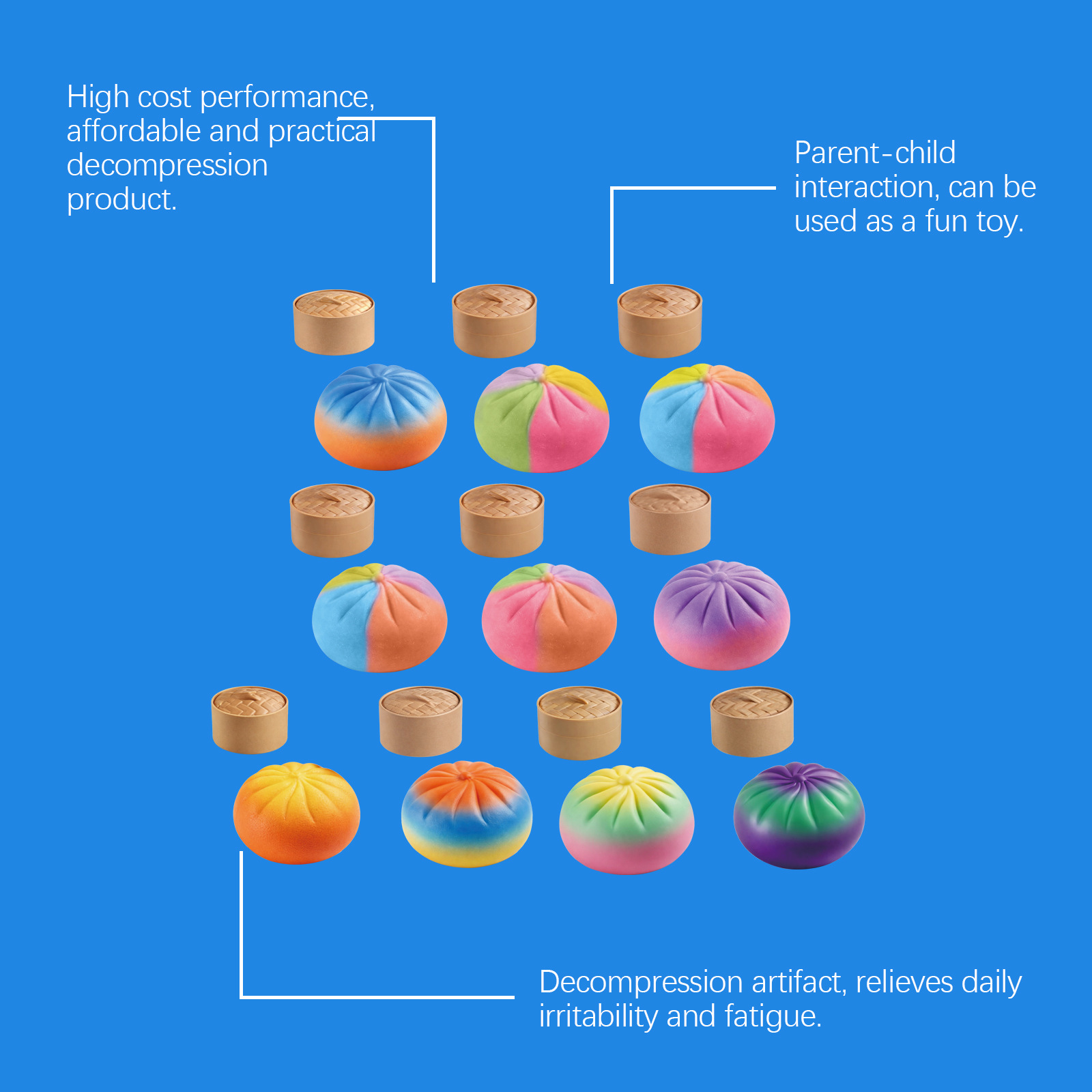 包子捏捏乐 多彩渐变造型日常反复揉捏娱乐趣味互动柔软包子玩具