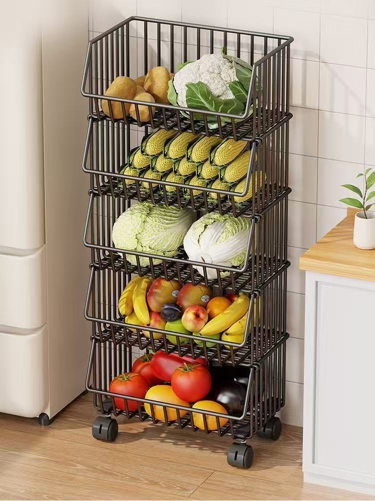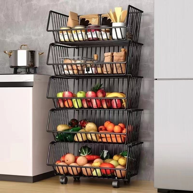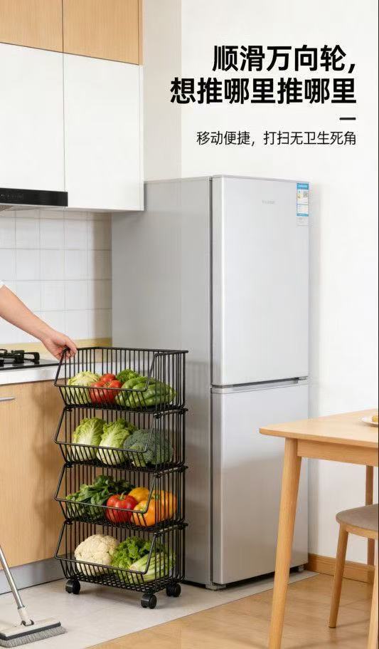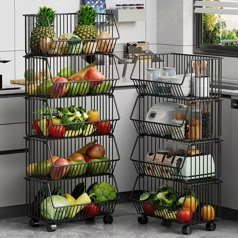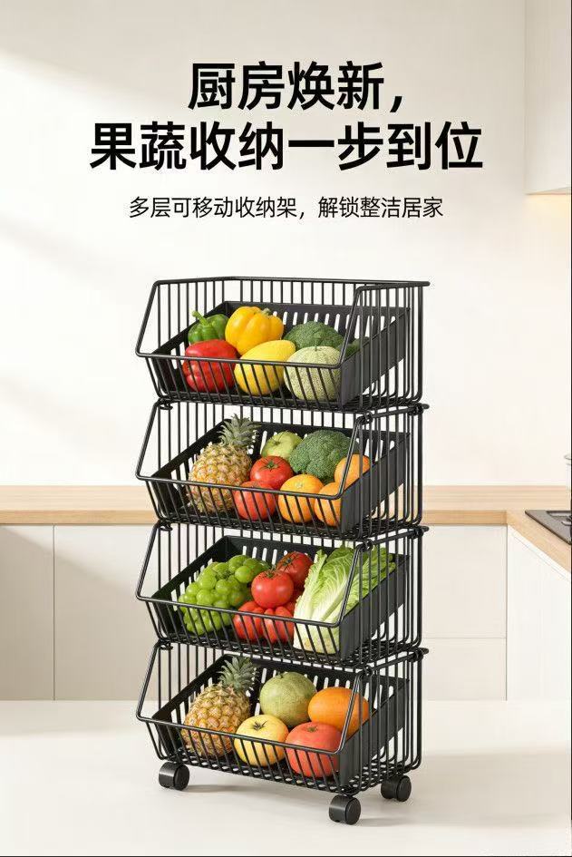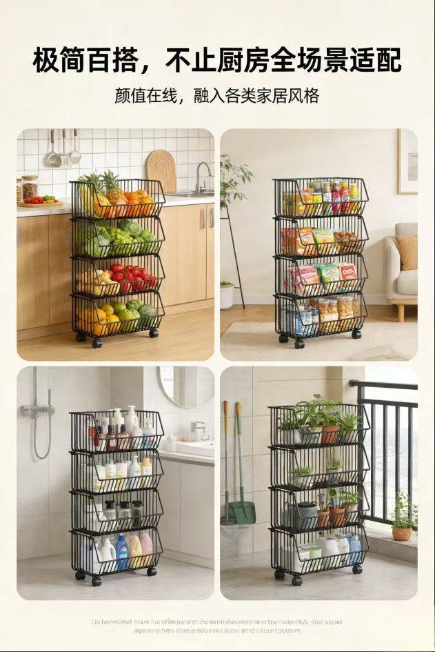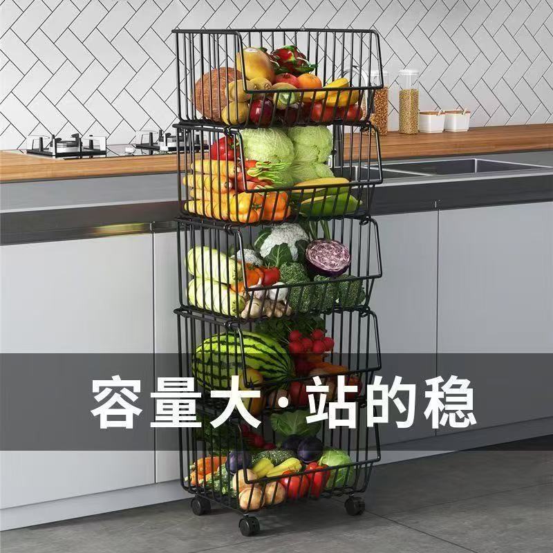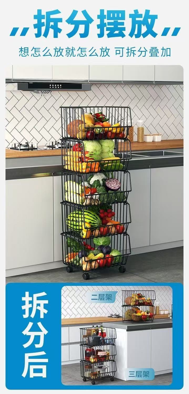 厨房氺果蔬菜篮子多层置物架可移动小推车收纳筐加粗加厚加大容量