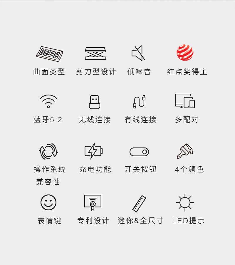 无线蓝牙静音键盘定制 84 99 104键 可印logo 三模曲面剪刀脚键盘
