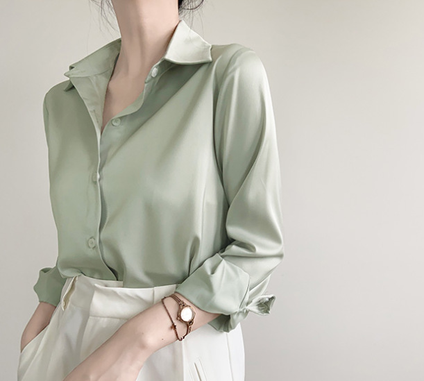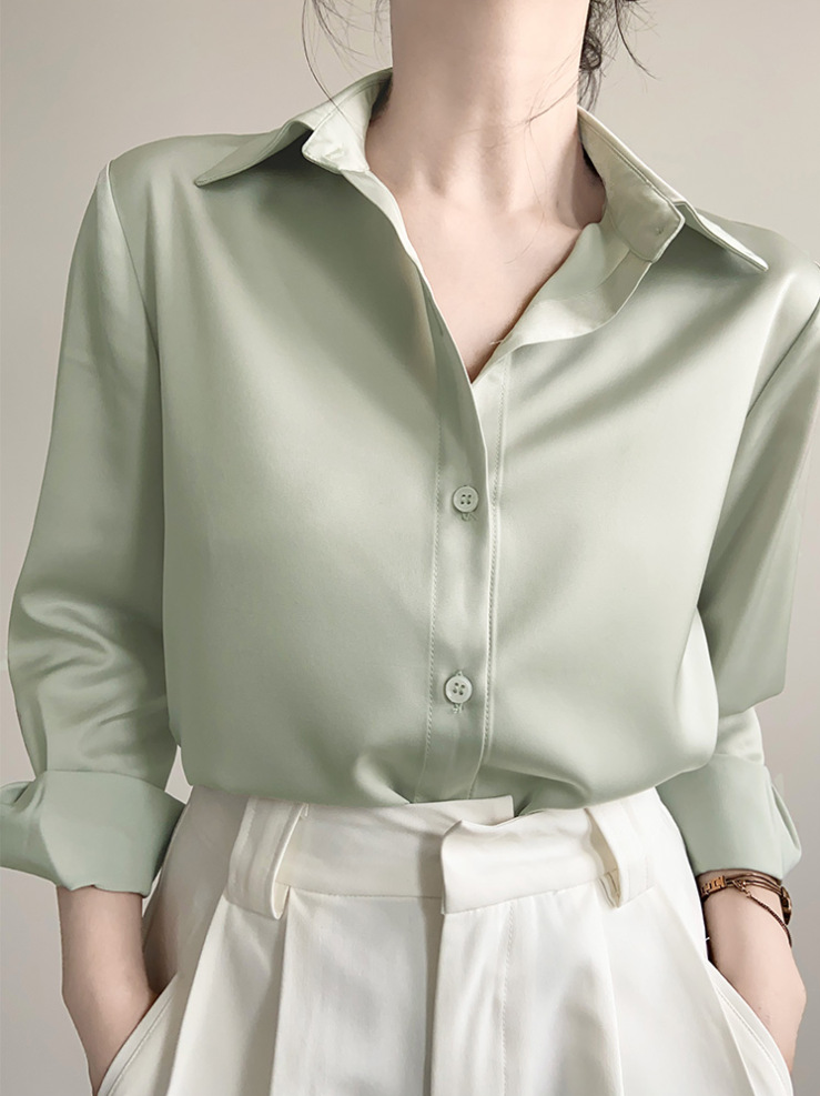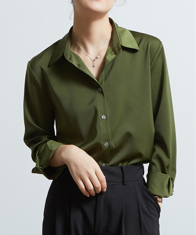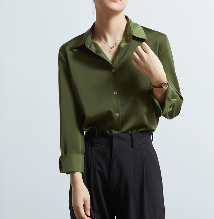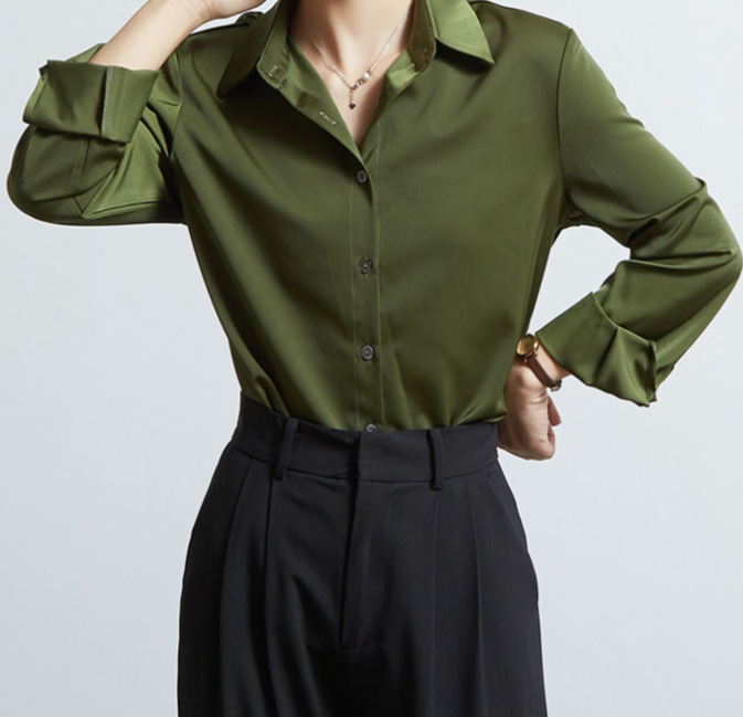 率性简约 绿色缎面衬衫女高级感职业面试衬衣轻职场通勤上衣长袖,批发价,价格:43,厂家直销,率性简约 绿色缎面衬衫女高级感职业面试衬衣轻职场通勤上衣长袖,免费拿样。