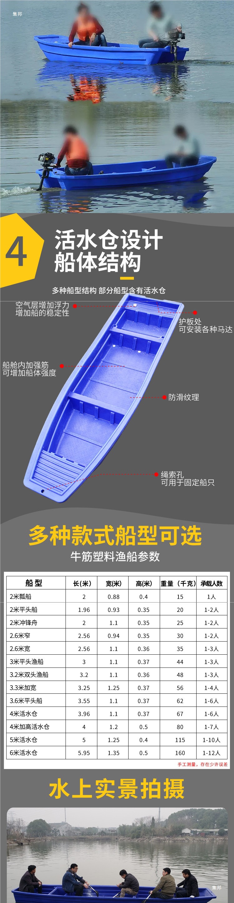 塑料船渔船加厚pe牛筋钓鱼小船养殖船冲锋舟双层河道保洁船橡皮艇