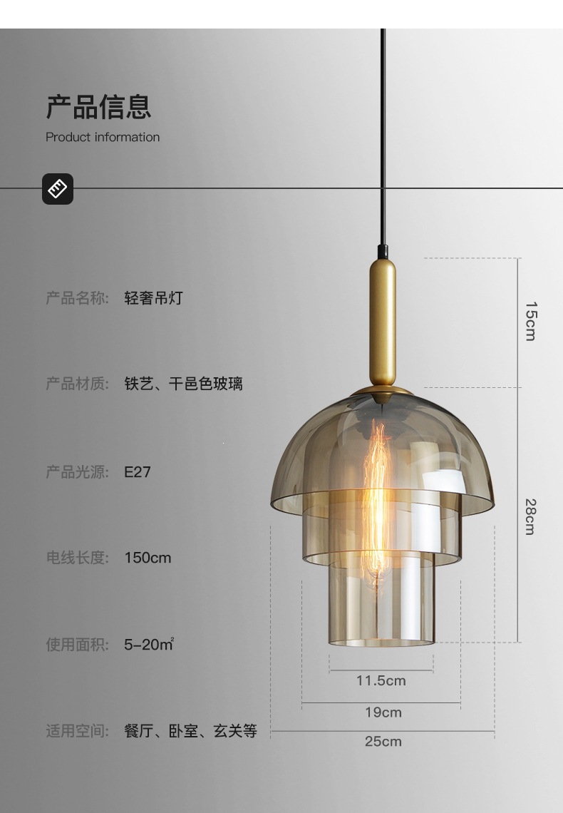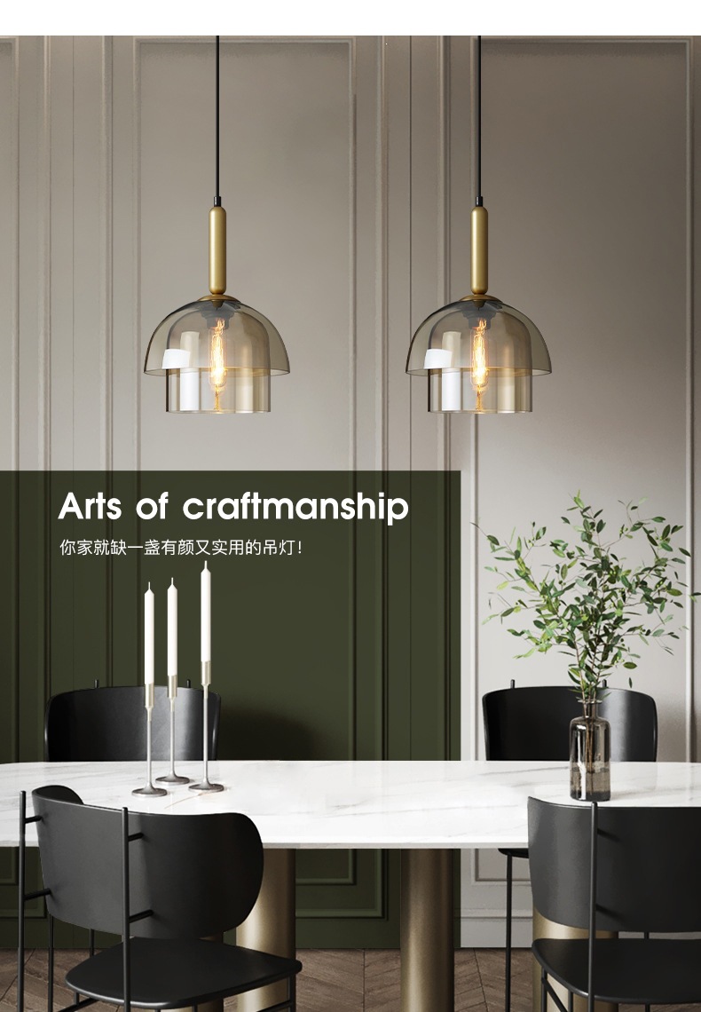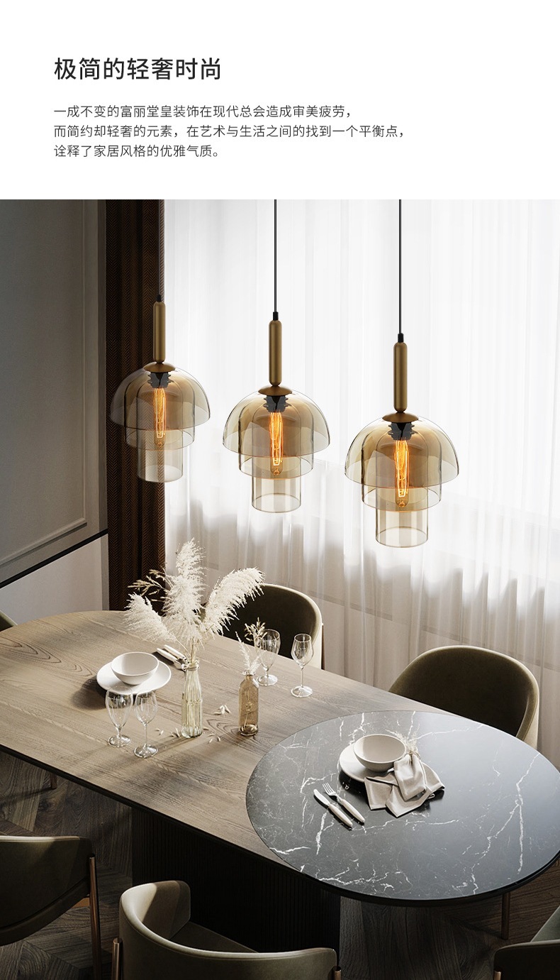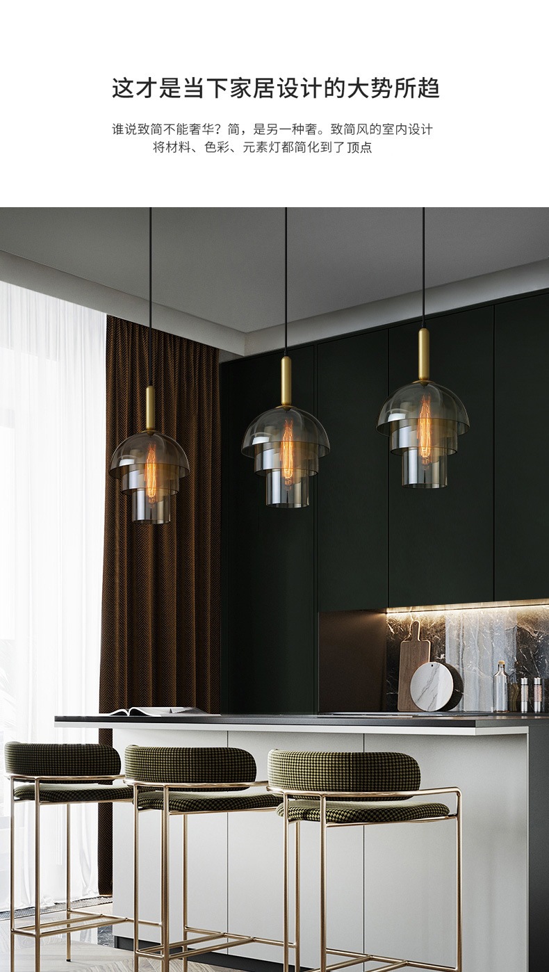 美式简约设计师餐厅咖啡厅吧台灯具工业风复古卧室床头玻璃吊灯