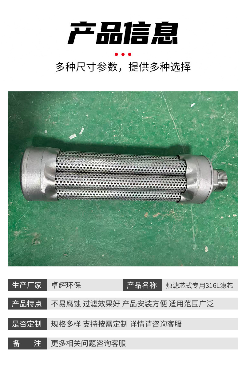 推荐理由:烛式过滤器烛滤芯式专用316L滤芯不锈钢滤烛管滤烛式过滤器滤管