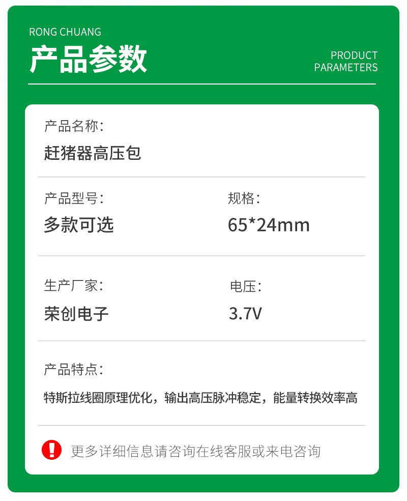 新款赶猪器高压包24直径65长3.7v输入可长时间打铁短路