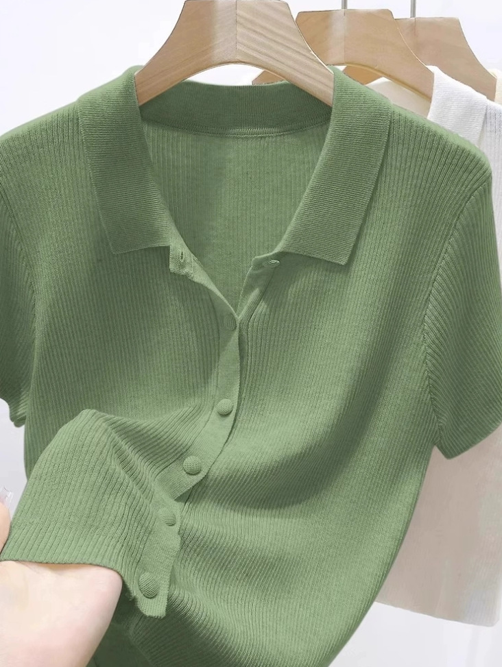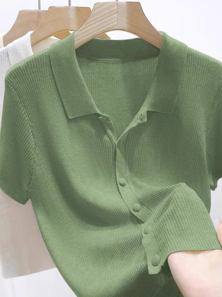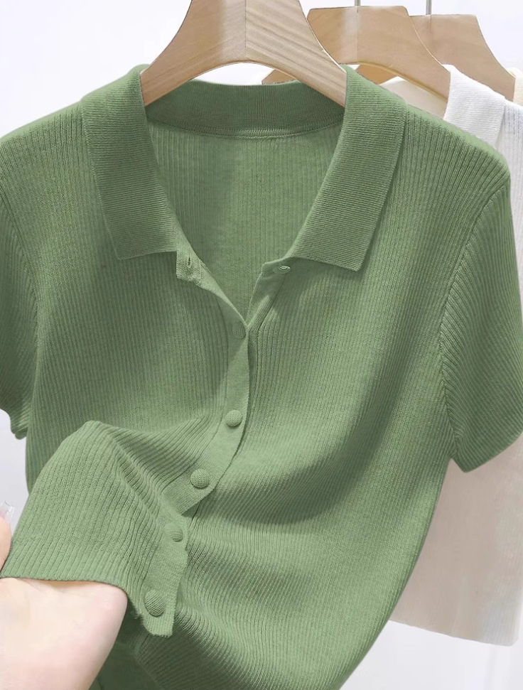 老钱风绿色Polo领针织开衫女2026年夏季新款宽松显瘦短袖T恤上衣,批发价,价格:34,厂家直销,老钱风绿色Polo领针织开衫女2026年夏季新款宽松显瘦短袖T恤上衣,免费拿样。