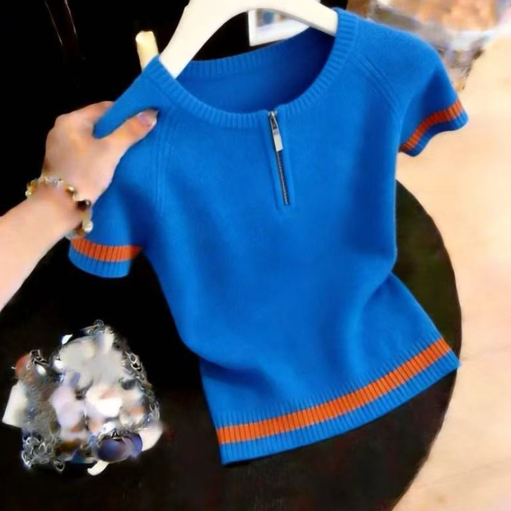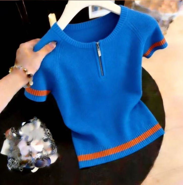 夏季新款韩版轻奢女装时尚气质潮流百搭显瘦短袖针织T恤上衣女,批发价,价格:29.9,厂家直销,夏季新款韩版轻奢女装时尚气质潮流百搭显瘦短袖针织T恤上衣女,免费拿样。