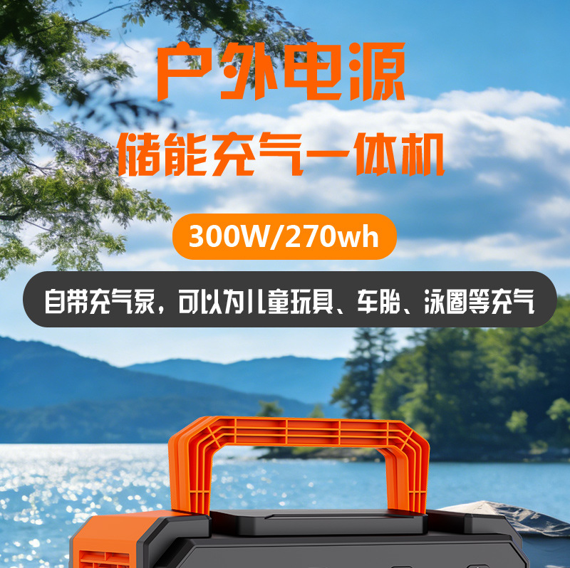 便携 300W 移动电源带充气泵车载打气户外露营儿童玩具充气电源