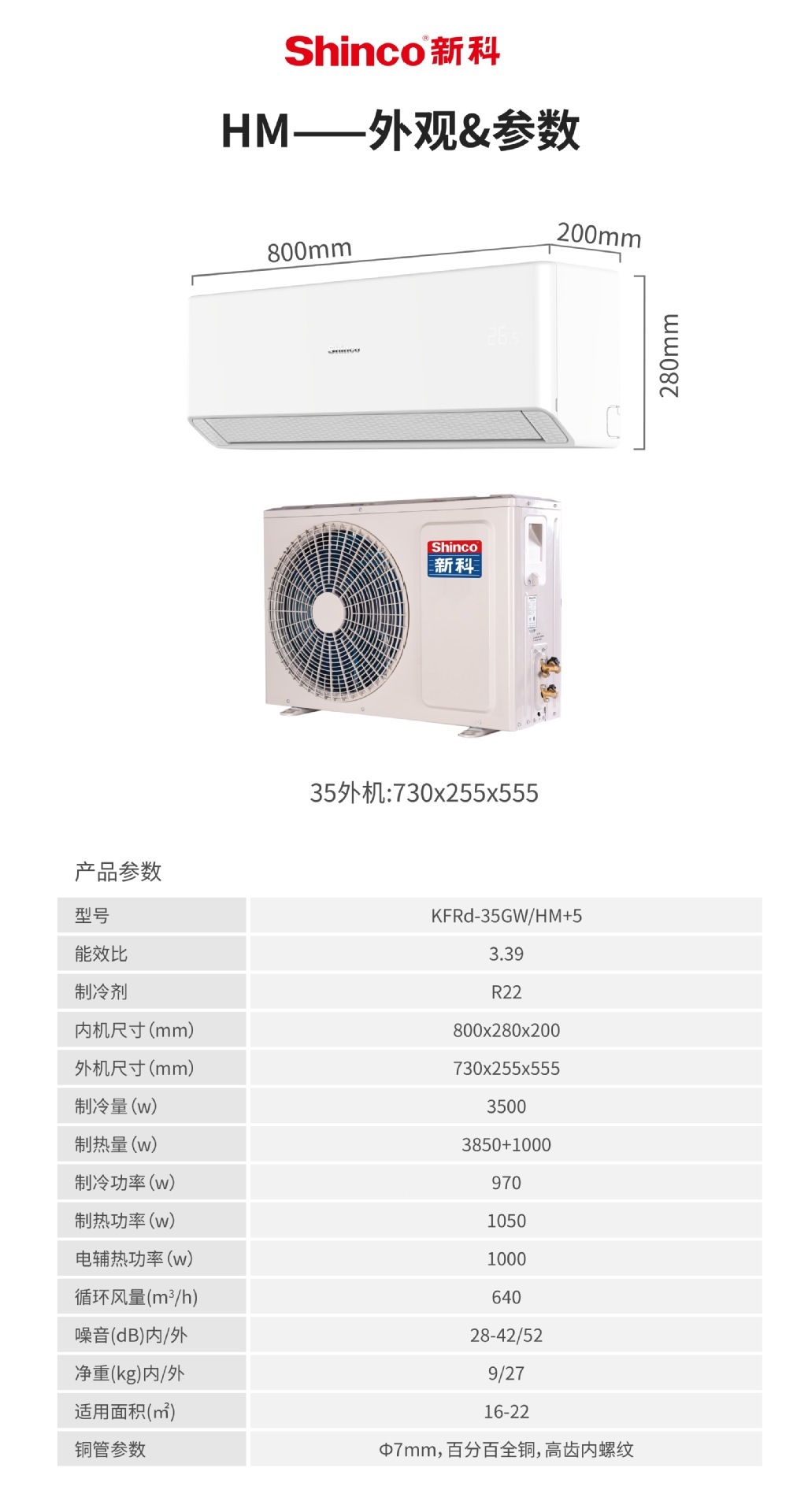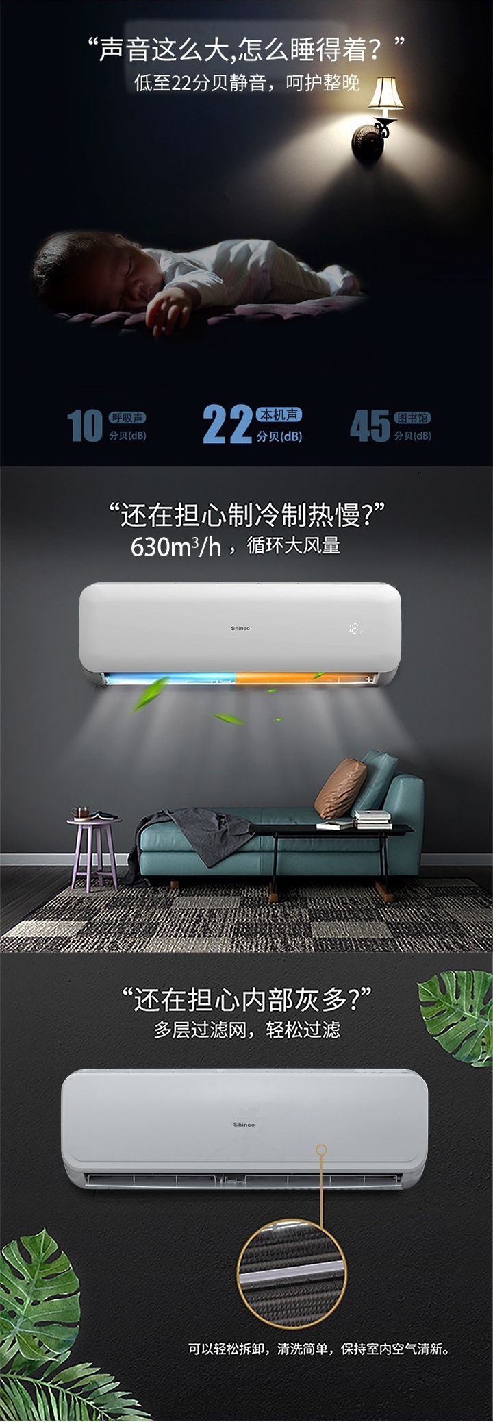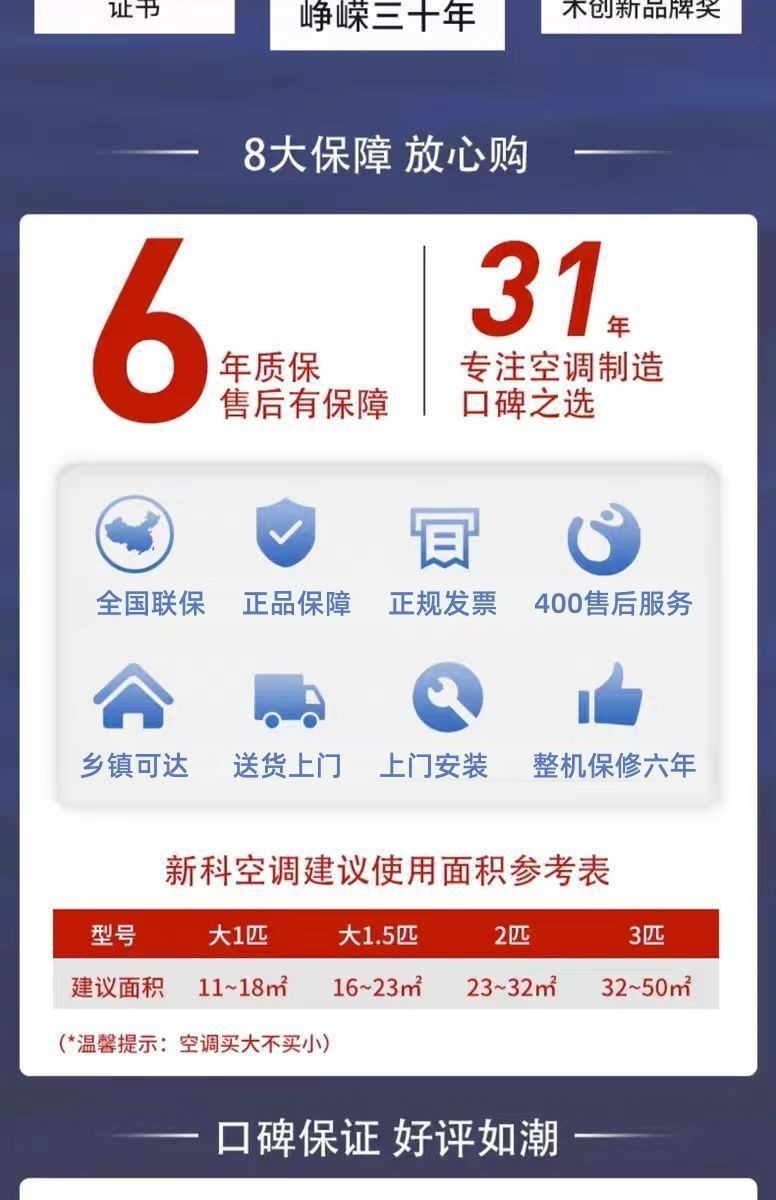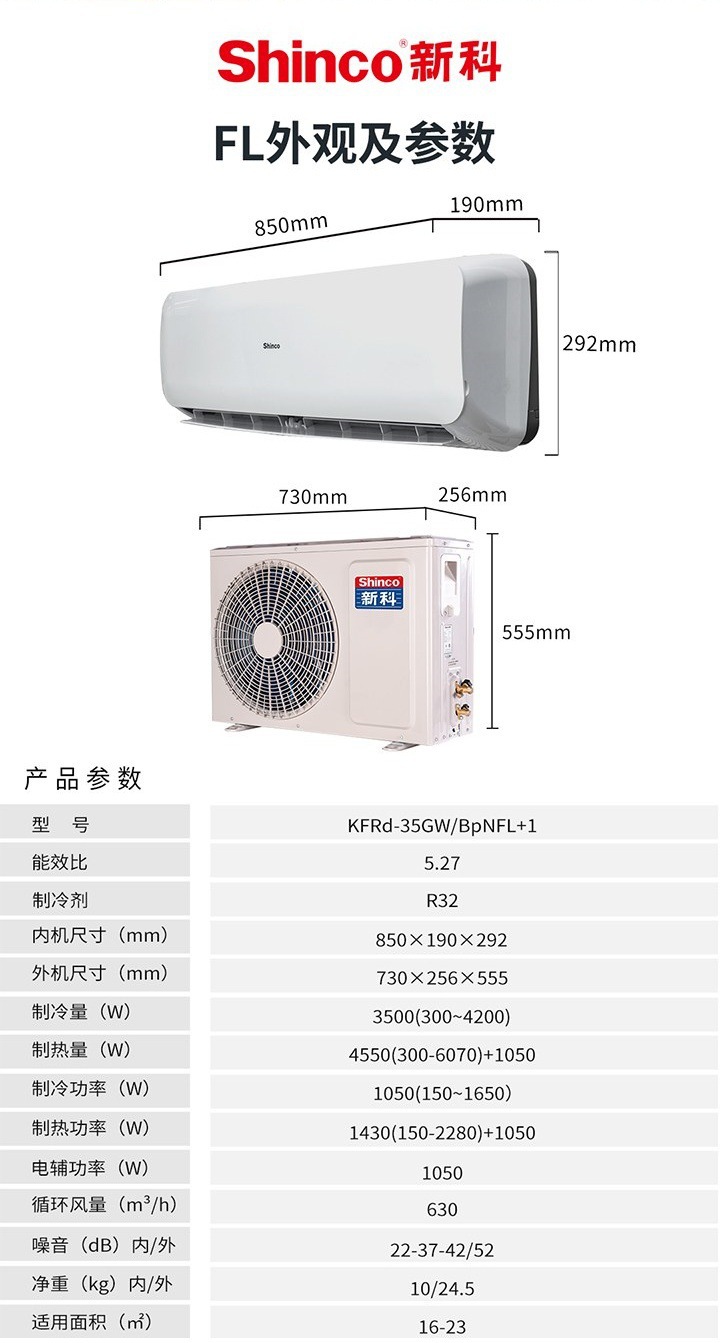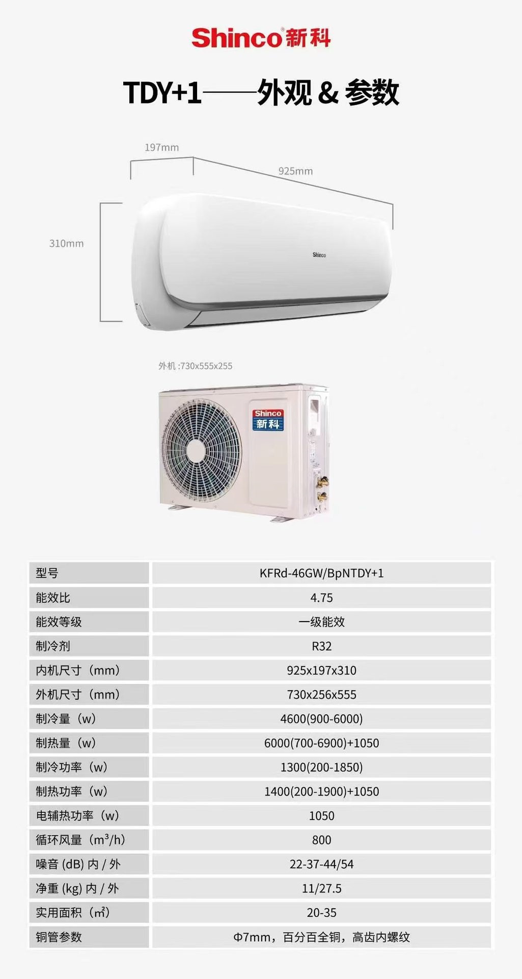 纯铜管新科空调挂机1.5匹新一级能效变频冷暖家用节能静音巨省电