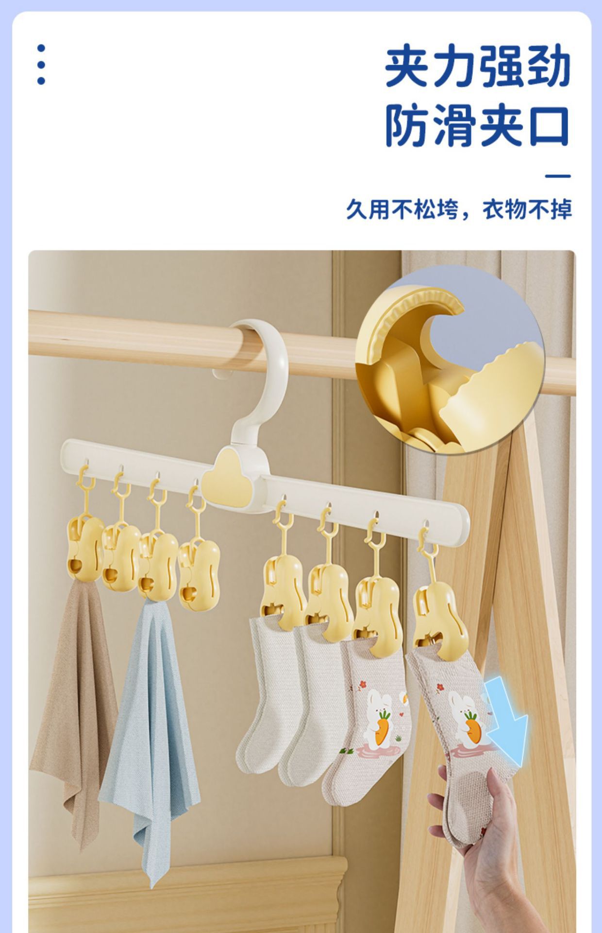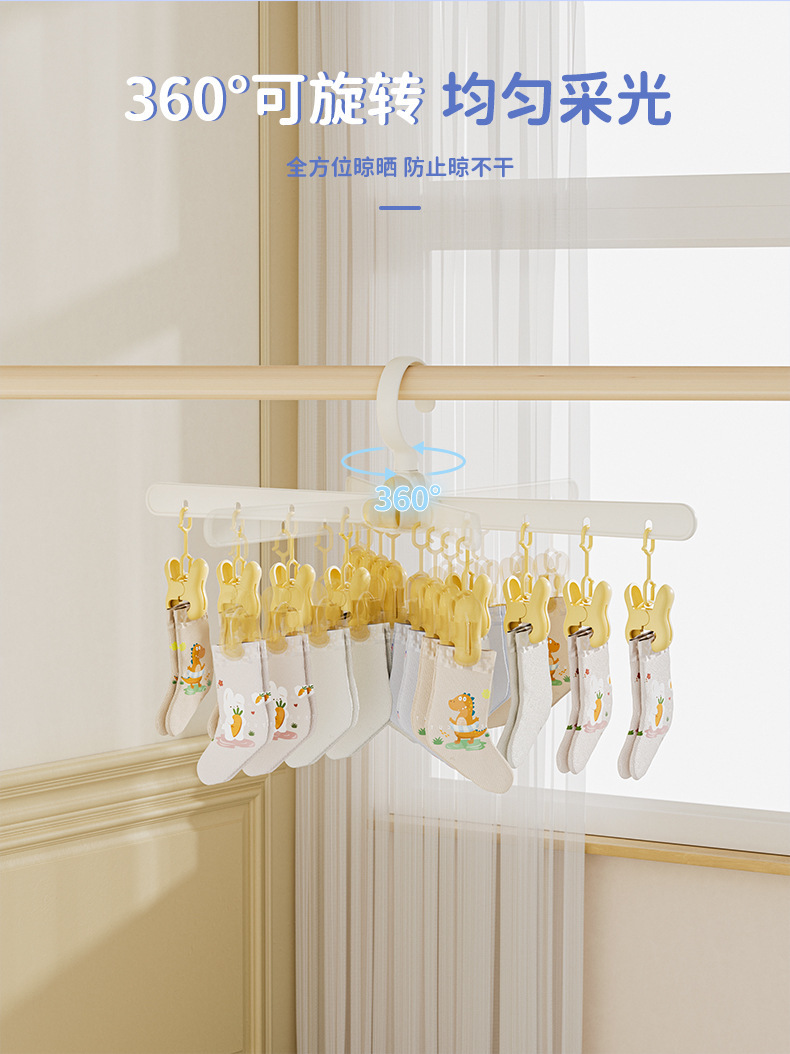 婴儿宝宝晾晒袜子神器儿童衣架家用挂衣阳台儿多夹子架收纳