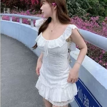 法式小飞袖连衣裙女夏季修身显瘦白色短裙纯欲风荷叶边设计感穿搭,批发价,价格:79,厂家直销,法式小飞袖连衣裙女夏季修身显瘦白色短裙纯欲风荷叶边设计感穿搭,免费拿样。