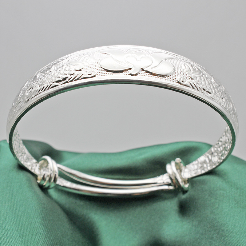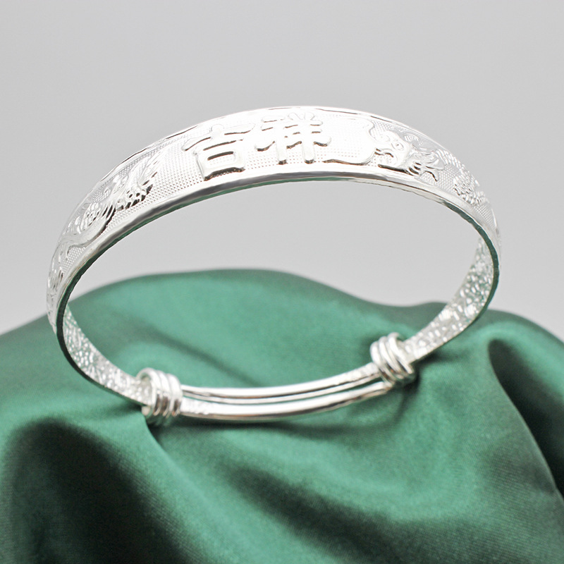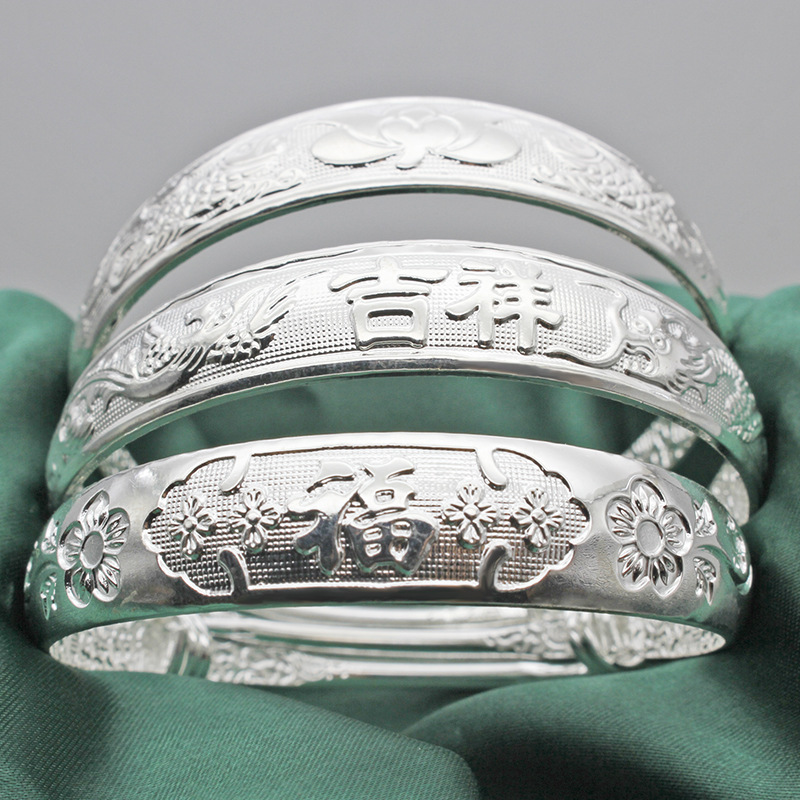 民族风苗银满天星紧箍咒福字手镯女20-34560岁10元店仿银镀银手镯