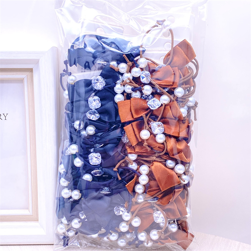多款韩版特惠两根卡装珍珠布艺领结清新少女发圈皮筋 两元店饰品