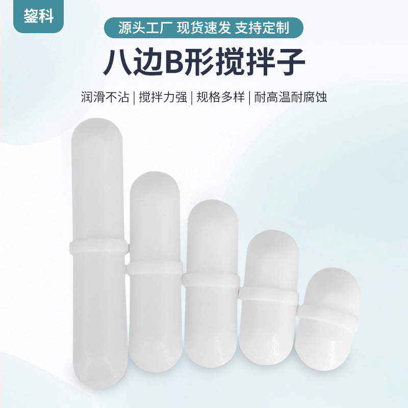 八角型B型磁力搅拌子 高温四氟磁子转子八边形有节圆柱带环
