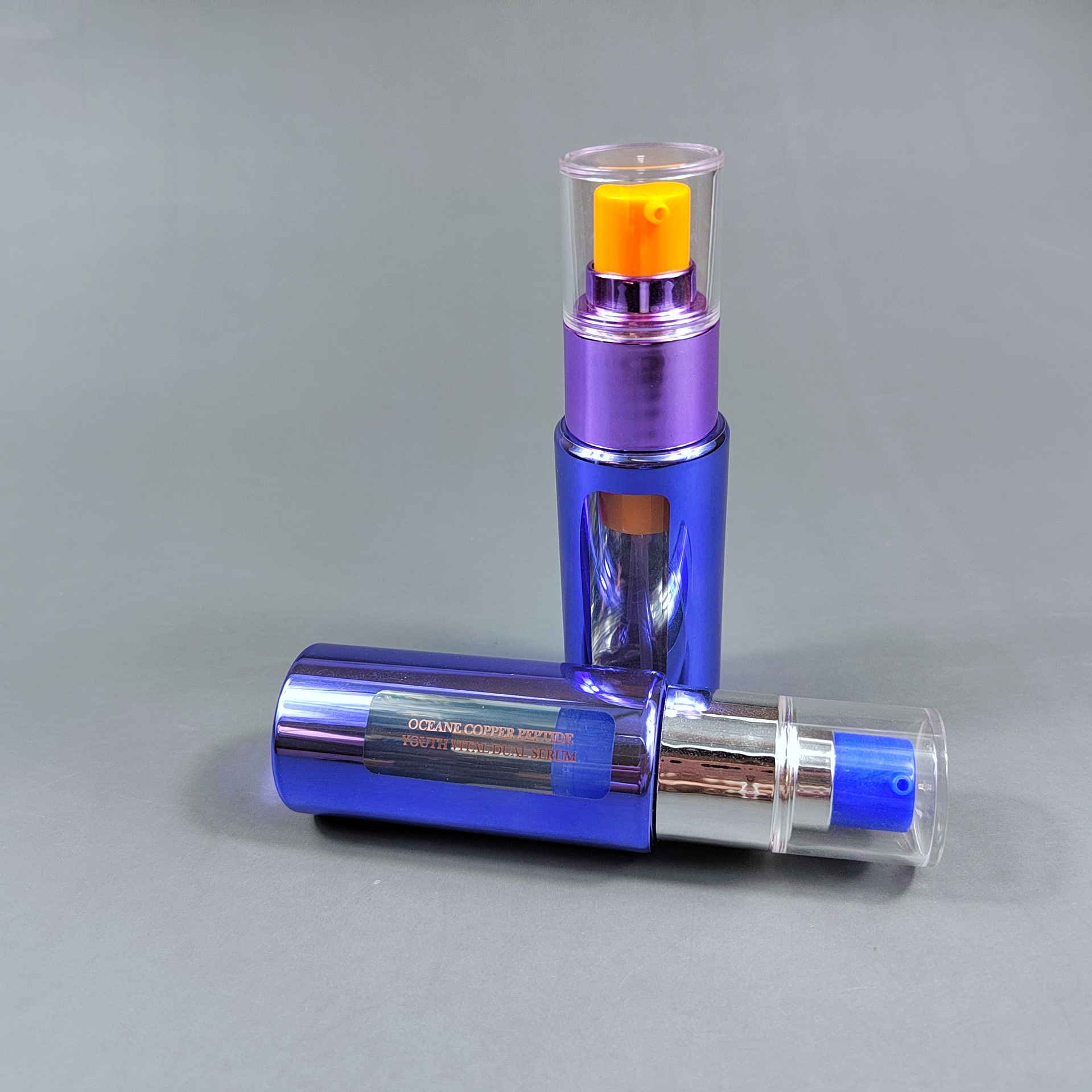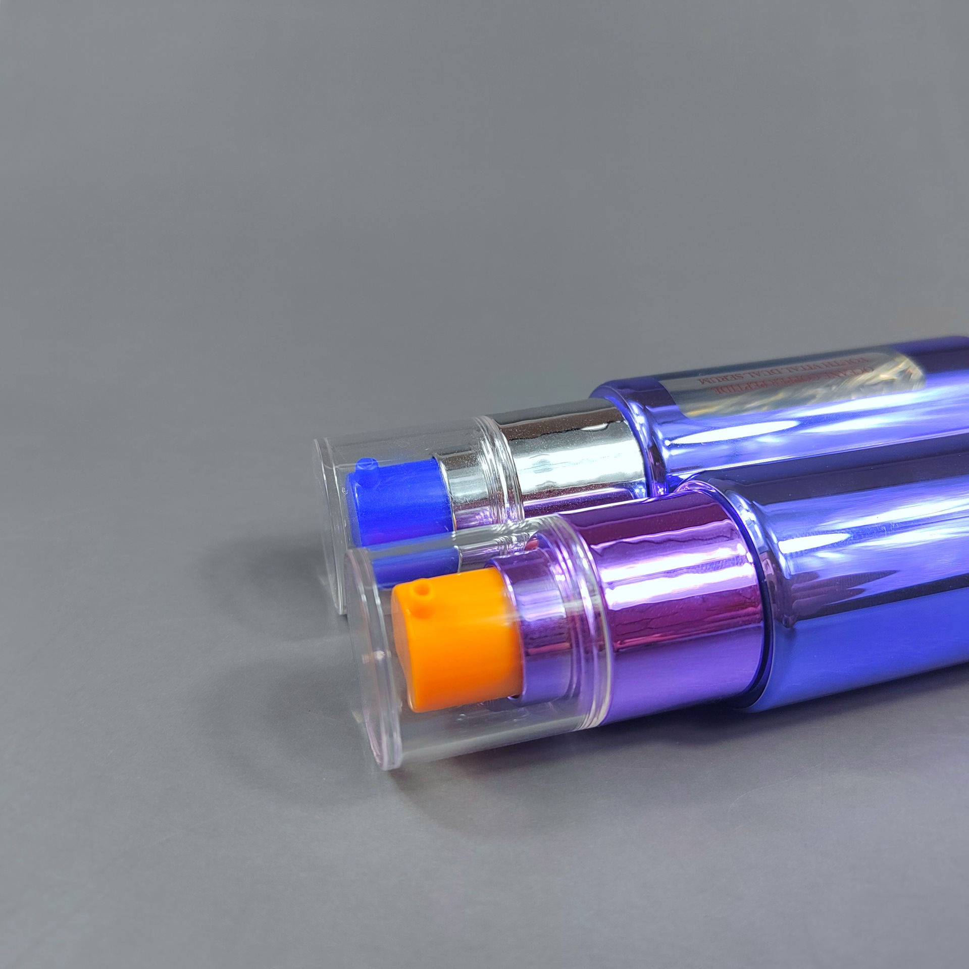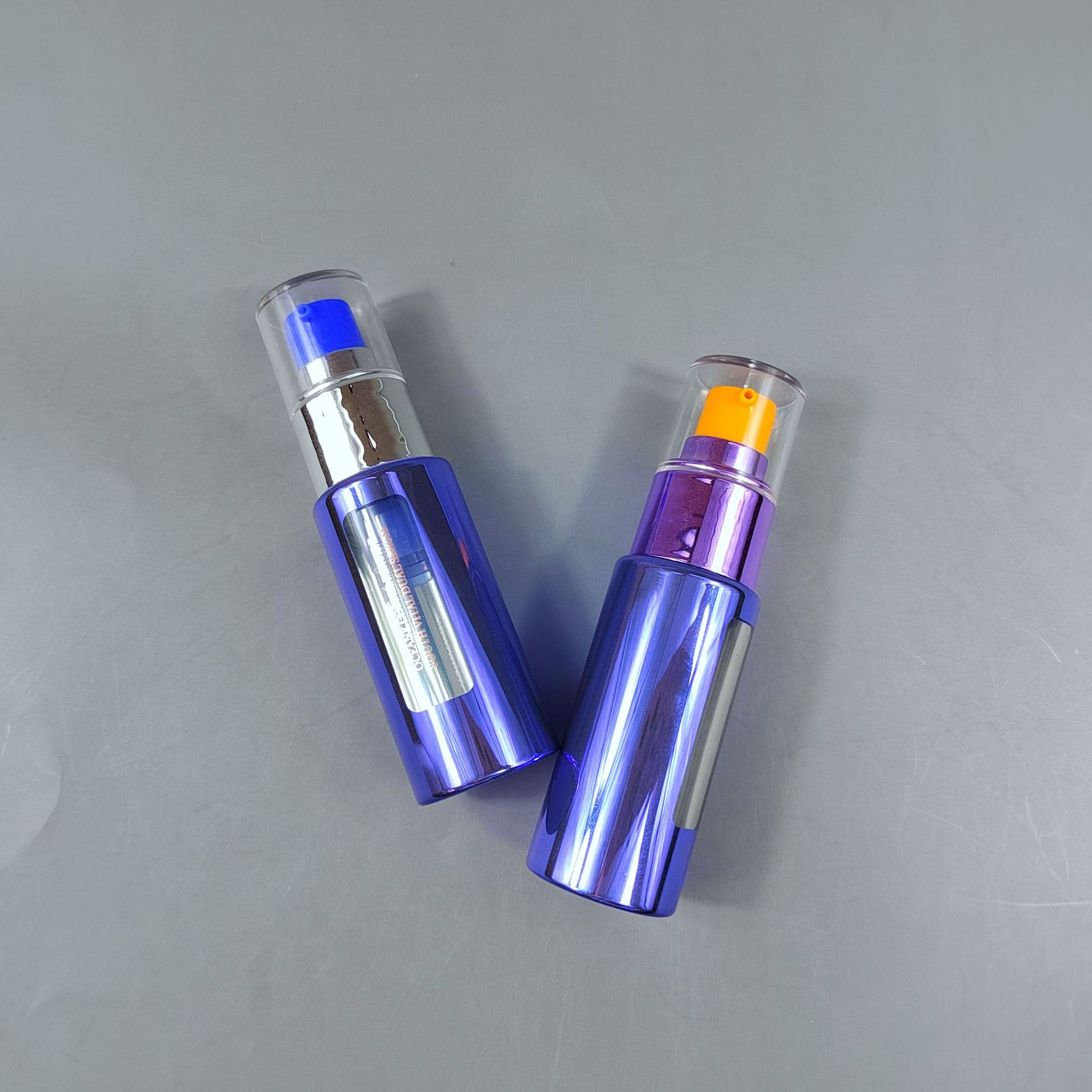 现货30ml修护精华液瓶子 PETG塑料电镀水粉混合一体双腔瓶虾青素
