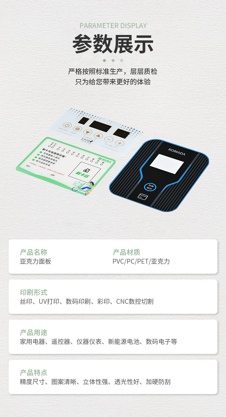 亚克力标牌定制薄膜开关面板丝印电器盖板空调有机玻璃控制面板